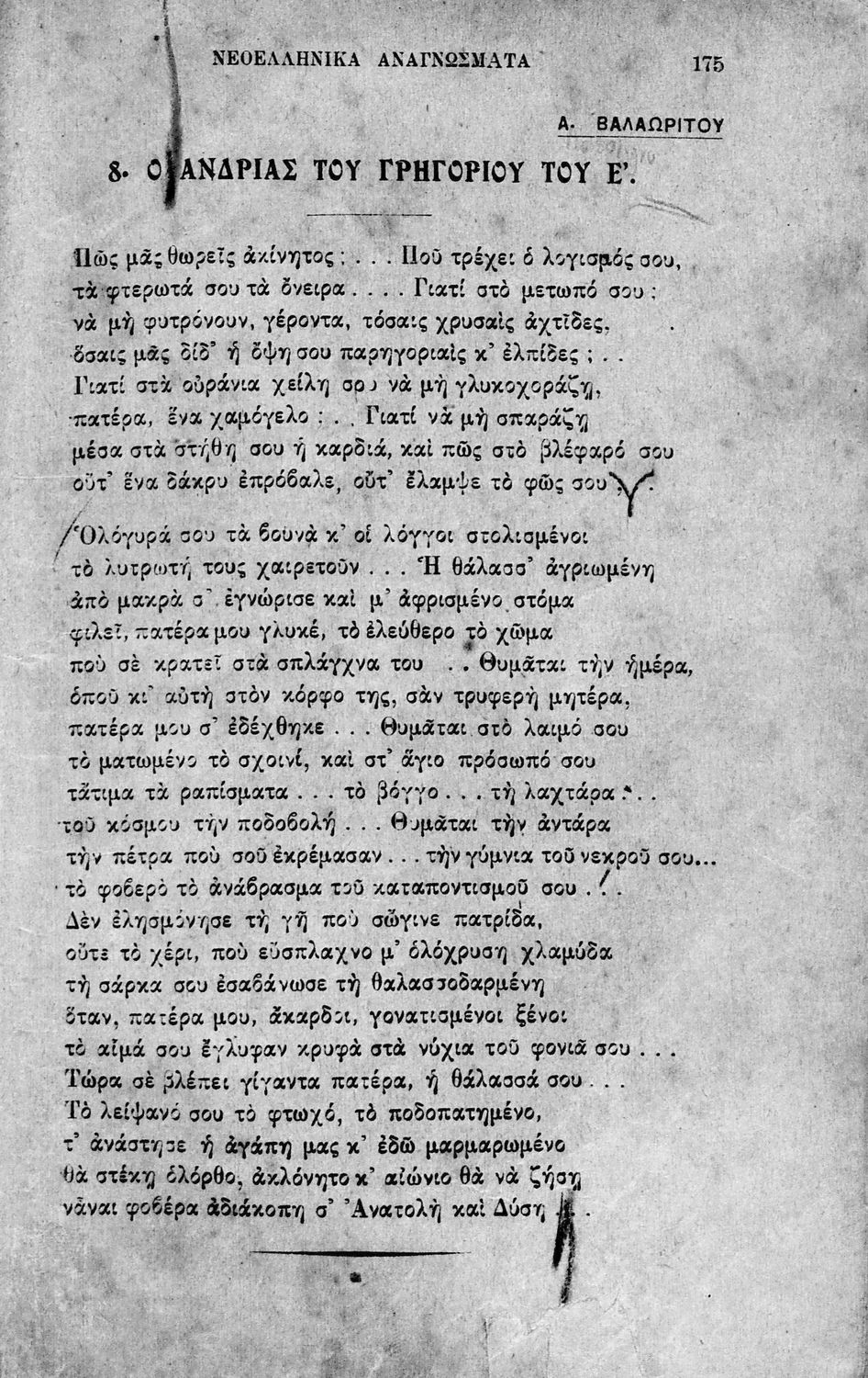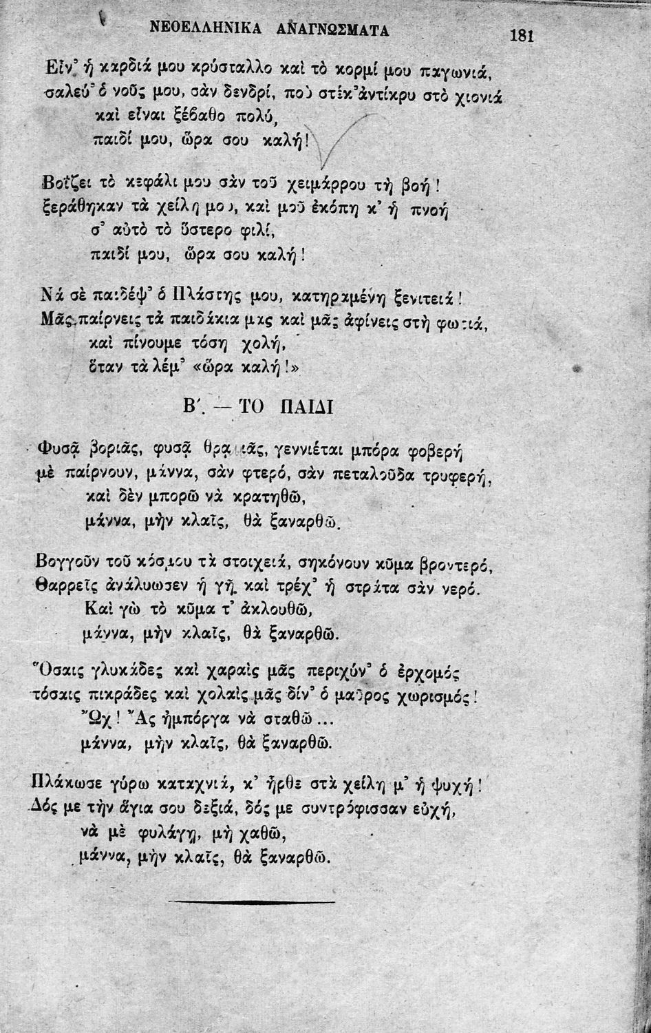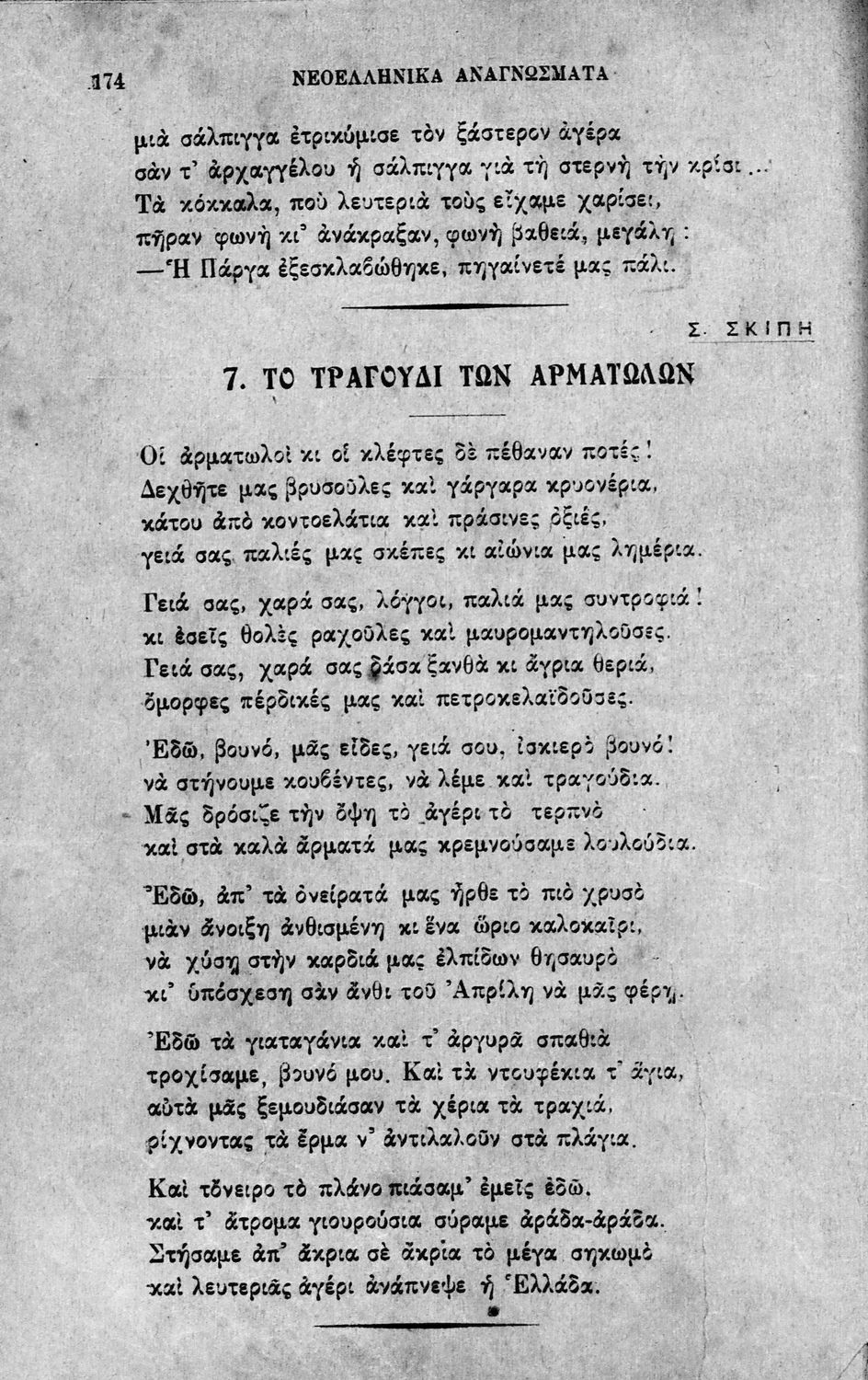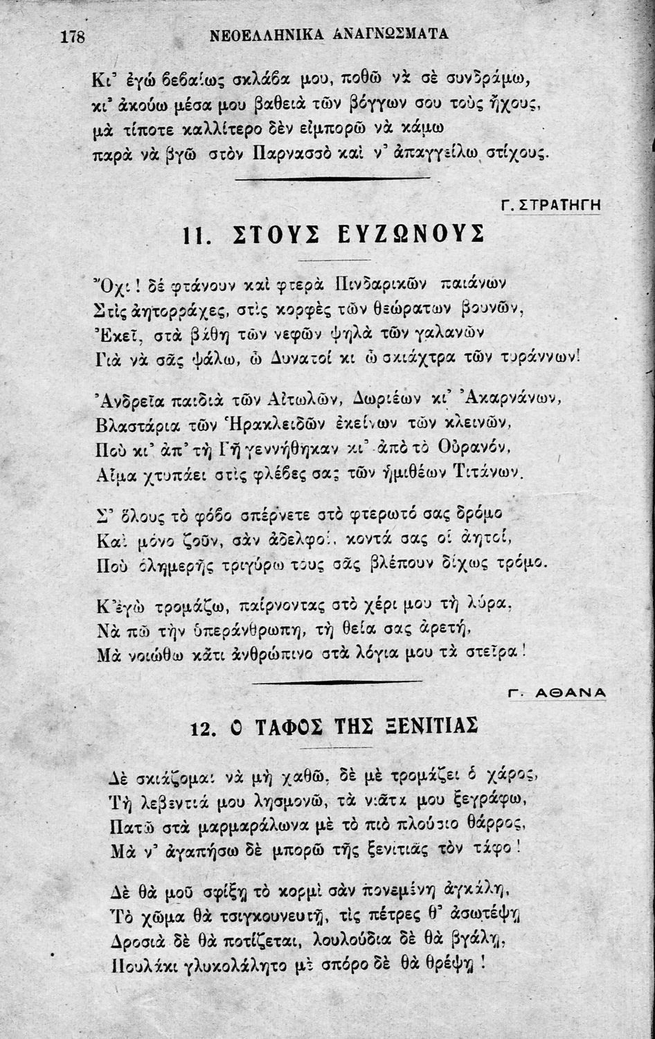 Σχολικό εγχειρίδιο Νέων Ελληνικών Γ' Ελληνικού Σχολείου που περιλαμβάνει ποιήματα και πεζά Ελλήνων συγγραφέων εμπνευσμένα από την σύγχρονη ελληνική ιστορία, την ελληνική φύση και τη ζωή στην ύπαιθρο, και τη ...