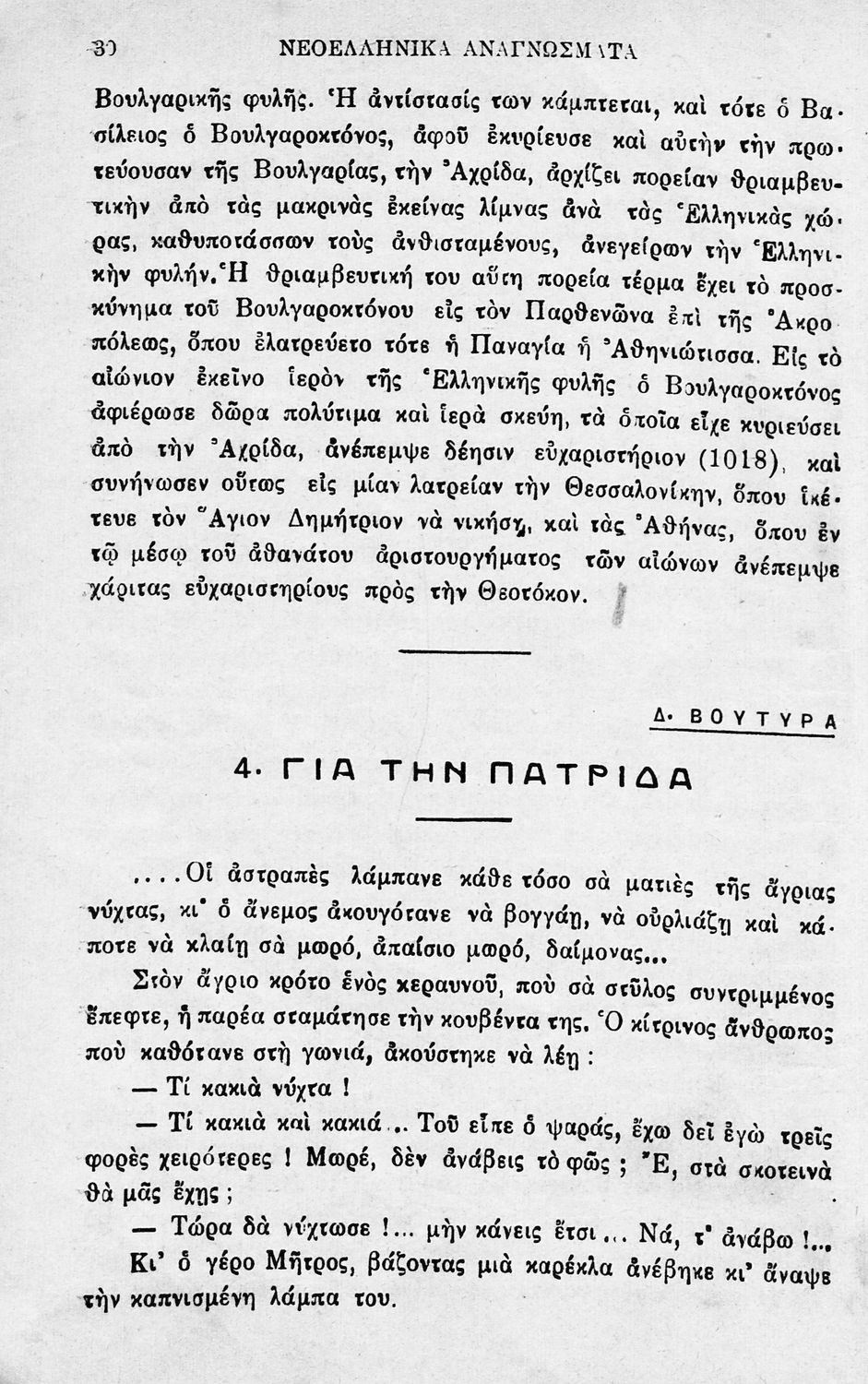 Σχολικό εγχειρίδιο Νέων Ελληνικών Γ' Ελληνικού και Α' Αστικού Σχολείου που περιλαμβάνει κείμενα Ελλήνων συγγραφέων εμπνευσμένα από την σύγχρονη ελληνική ιστορία, τη βυζαντινή ιστορία, την ελληνική φύση και τη ...