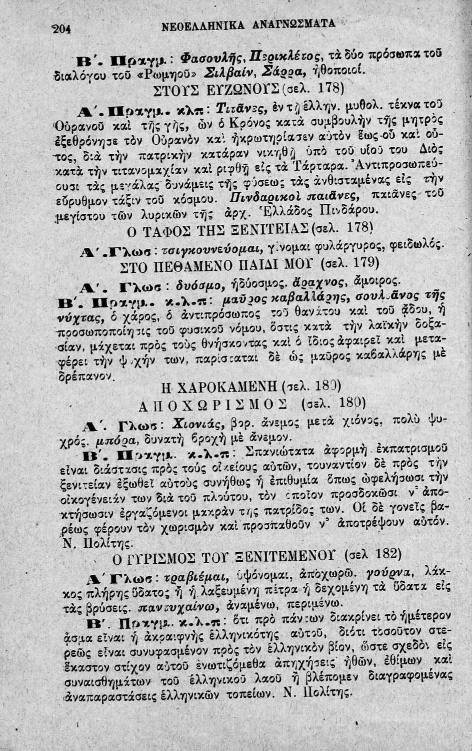 Σχολικό εγχειρίδιο Νέων Ελληνικών Γ' Ελληνικού Σχολείου που περιλαμβάνει ποιήματα και πεζά Ελλήνων συγγραφέων εμπνευσμένα από την σύγχρονη ελληνική ιστορία, την ελληνική φύση και τη ζωή στην ύπαιθρο, και τη ...