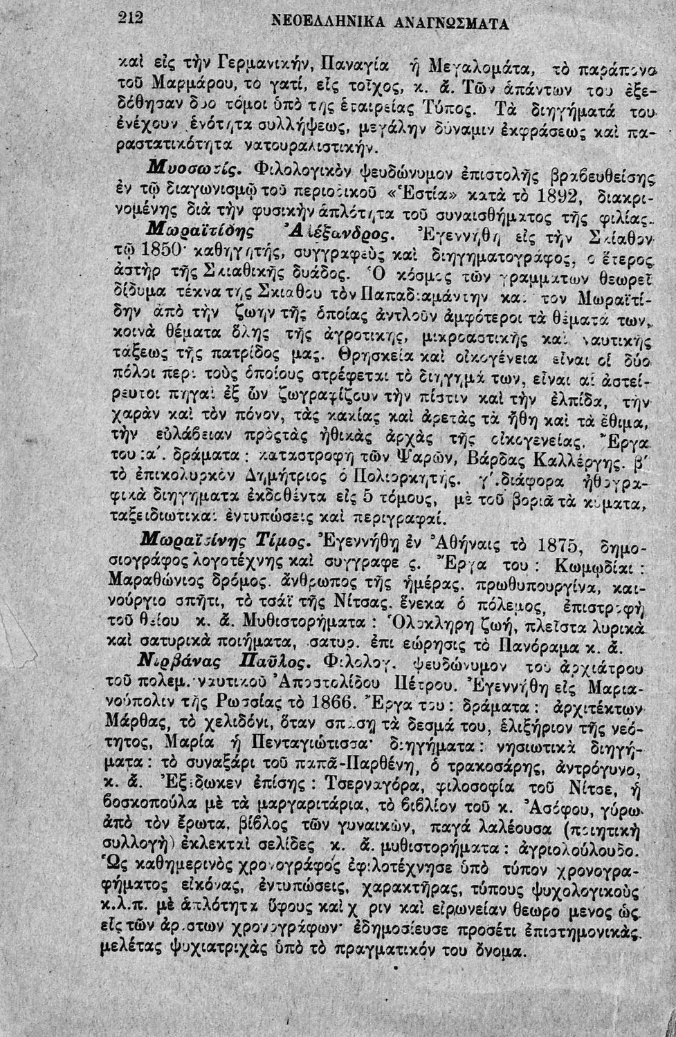 Σχολικό εγχειρίδιο για την Β΄ Γυμνασίου και την Γ΄ Αστικού Θηλέων για το μάθημα των Νέων Ελληνικών. Το εγχειρίδιο αποτελείται από κείμενα πεζού λόγου, επικολυρικά ποιήματα, ωδές, ηθογραφικά διηγήματα, ρητορικά