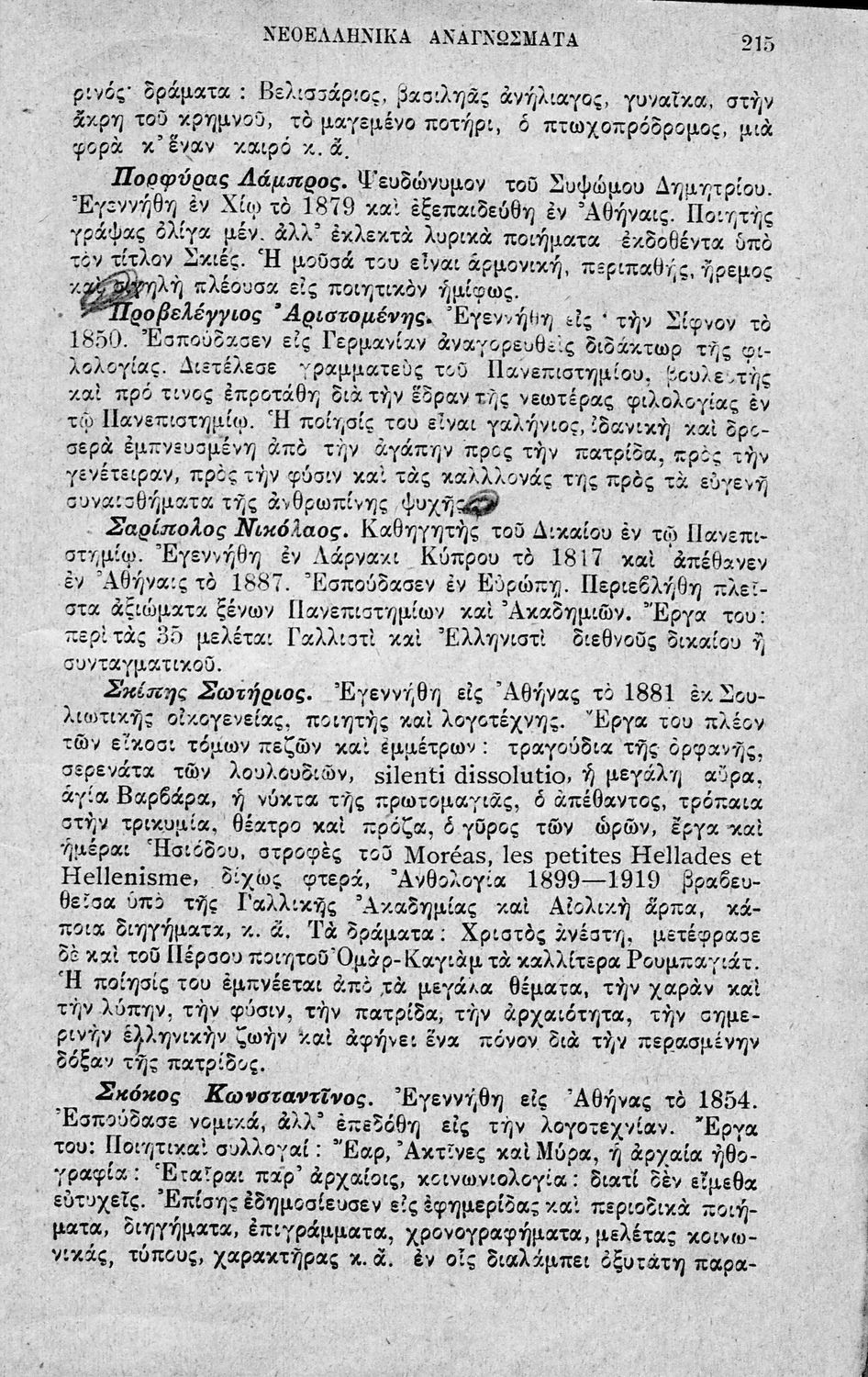 Σχετιζόμενοι όροι:  Λάμπρος, Σολωμός, Κάλβος, Κοραής, Παλαμάς