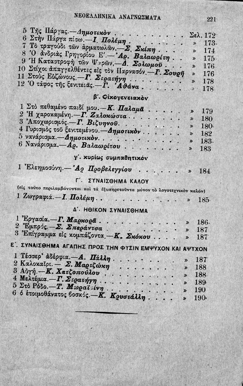Σχολικό εγχειρίδιο Νέων Ελληνικών Γ' Ελληνικού Σχολείου που περιλαμβάνει ποιήματα και πεζά Ελλήνων συγγραφέων εμπνευσμένα από την σύγχρονη ελληνική ιστορία, την ελληνική φύση και τη ζωή στην ύπαιθρο, και τη ...