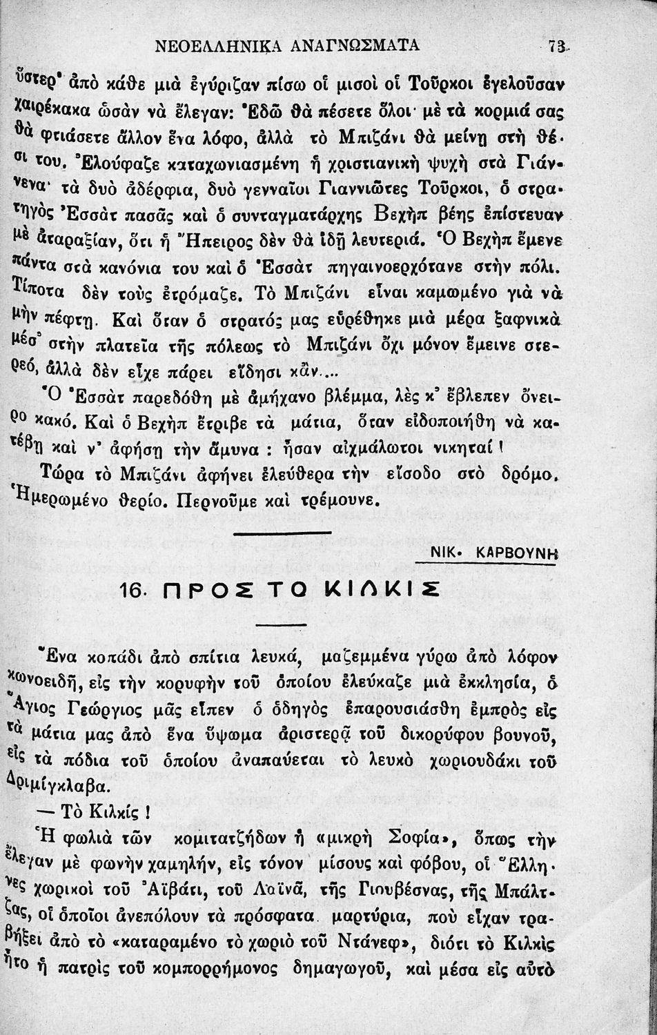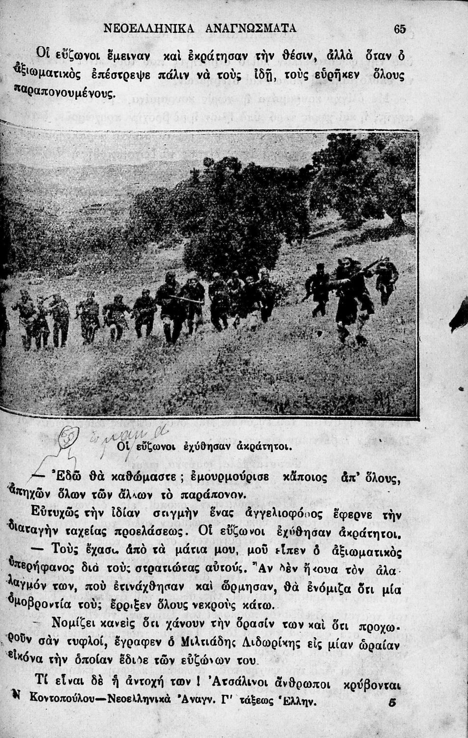 Σχολικό εγχειρίδιο Νέων Ελληνικών Γ' Ελληνικού και Α' Αστικού Σχολείου που περιλαμβάνει κείμενα Ελλήνων συγγραφέων εμπνευσμένα από την σύγχρονη ελληνική ιστορία, τη βυζαντινή ιστορία, την ελληνική φύση και τη ...