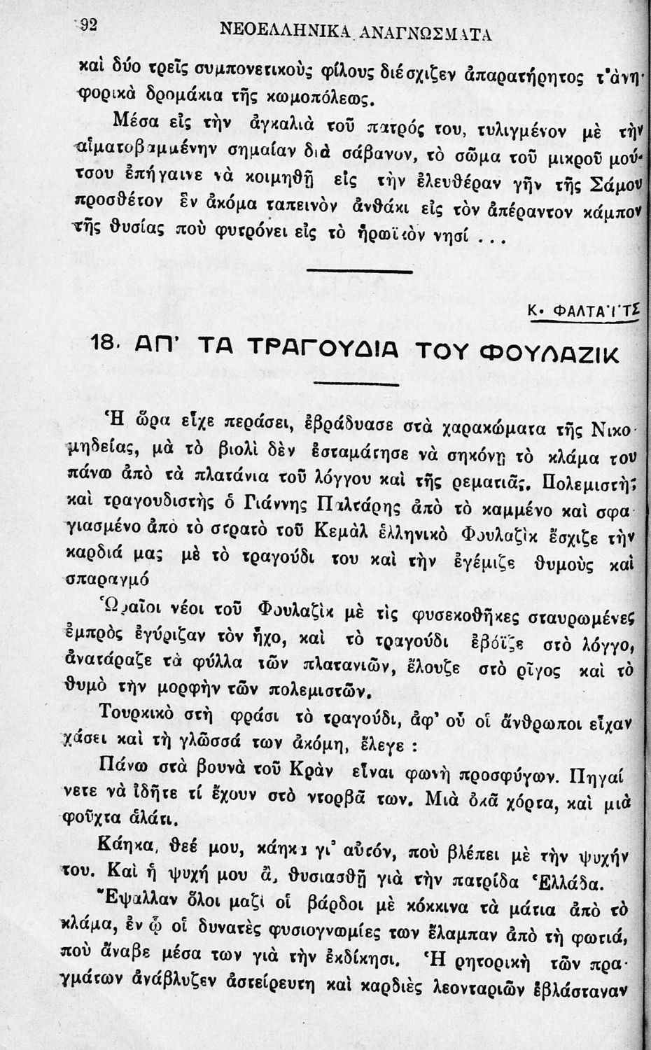 Σχολικό εγχειρίδιο Νέων Ελληνικών Γ' Ελληνικού Σχολείου που περιλαμβάνει ποιήματα και πεζά Ελλήνων συγγραφέων εμπνευσμένα από την σύγχρονη ελληνική ιστορία, την ελληνική φύση και τη ζωή στην ύπαιθρο, και τη ...