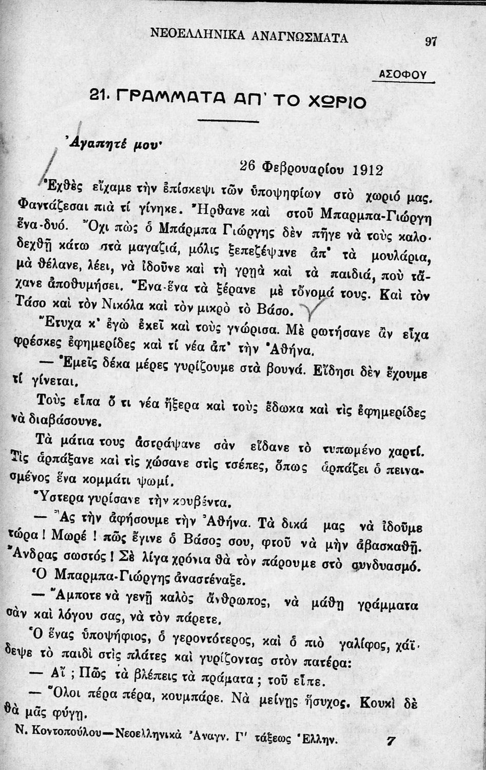 Νεοελληνικά αναγνώσματα εγκριθέντα δια τους μαθητάς της Γ΄ τάξεως των Ελληνικών Σχολείων και της αντίστοιχης των Ελληνικών Σχολείων της Μ. Εκπαιδεύσεως