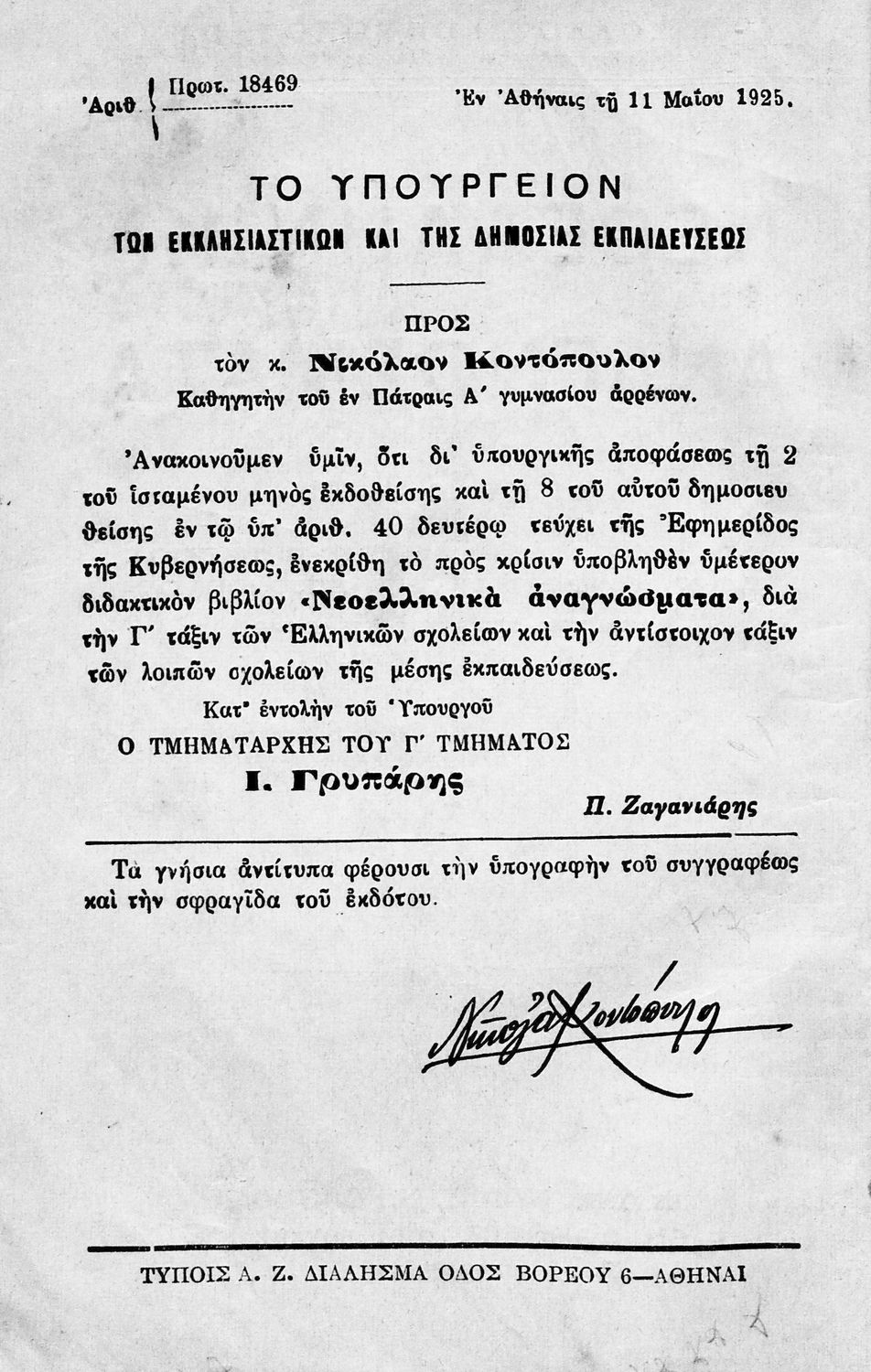Εκδότης: Ηλίας Ν. Δικαίος Έτος έκδοσης: 1925 Τόπος έκδοσης: Αθήνα Υπουργική απόφαση / Σύμβαση: 18469/11-5-1925 Έτος έγκρισης: 1925 |