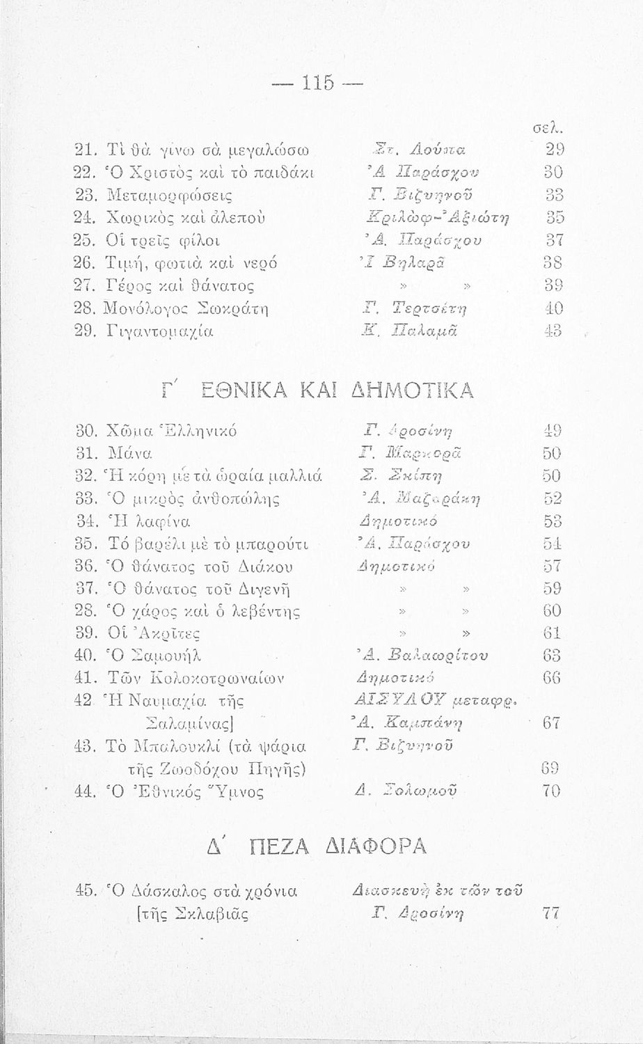 Σχολικό εγχειρίδιο Νέων Ελληνικών Γ΄ Γυμνασίου και Α' Αστικού Σχολείου που περιέχει πεζά και ποιήματα Ελλήνων συγγραφέων εμπνευσμένα από τη θρησκευτική και κοινωνική ζωή, την ελληνική μυθολογία, την αρχαία και