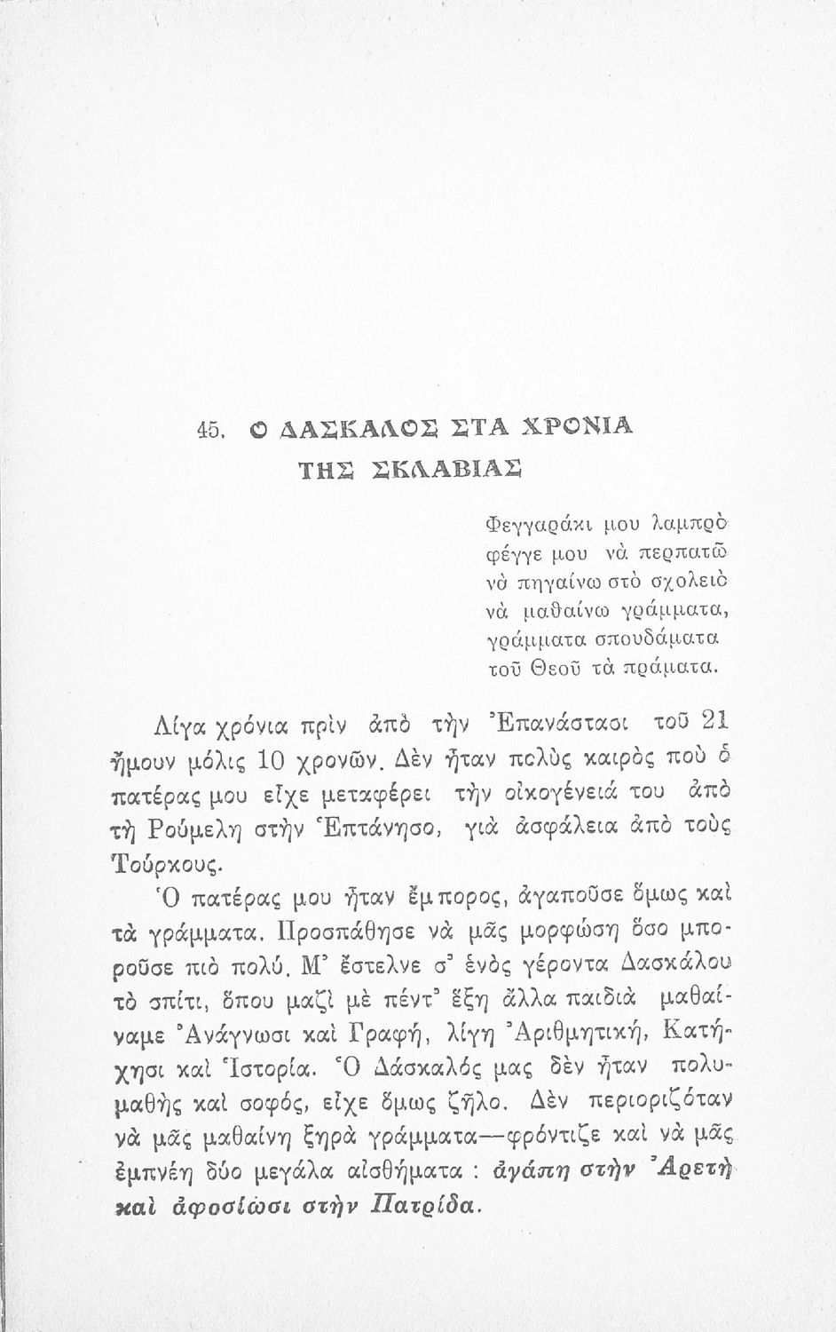 Σχολικό εγχειρίδιο Νέων Ελληνικών Δ΄ Γυμνασίου και Β΄ Αστικού Σχολείου που περιέχει πεζά και ποιήματα Ελλήνων συγγραφέων εμπνευσμένα από τη θρησκευτική και κοινωνική ζωή, την ελληνική μυθολογία, την αρχαία και