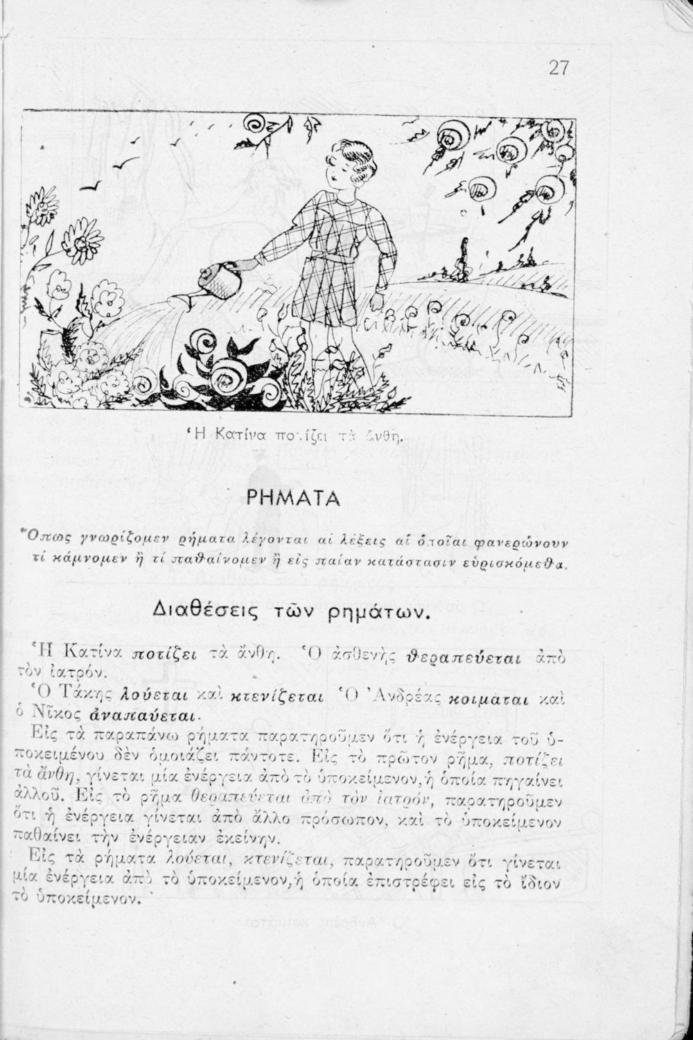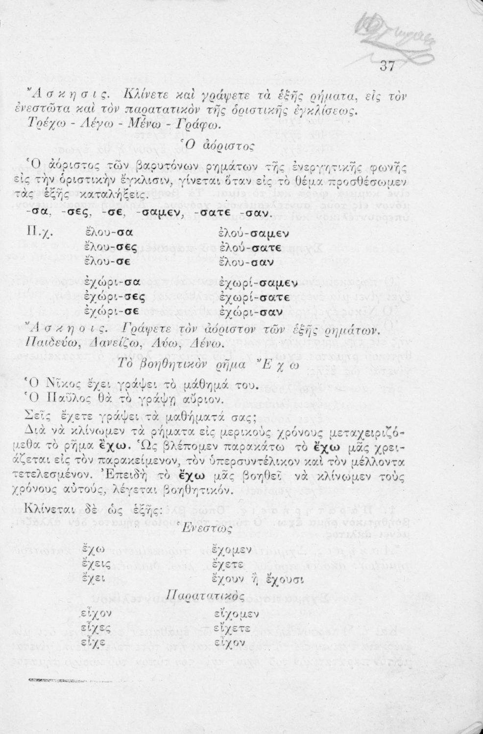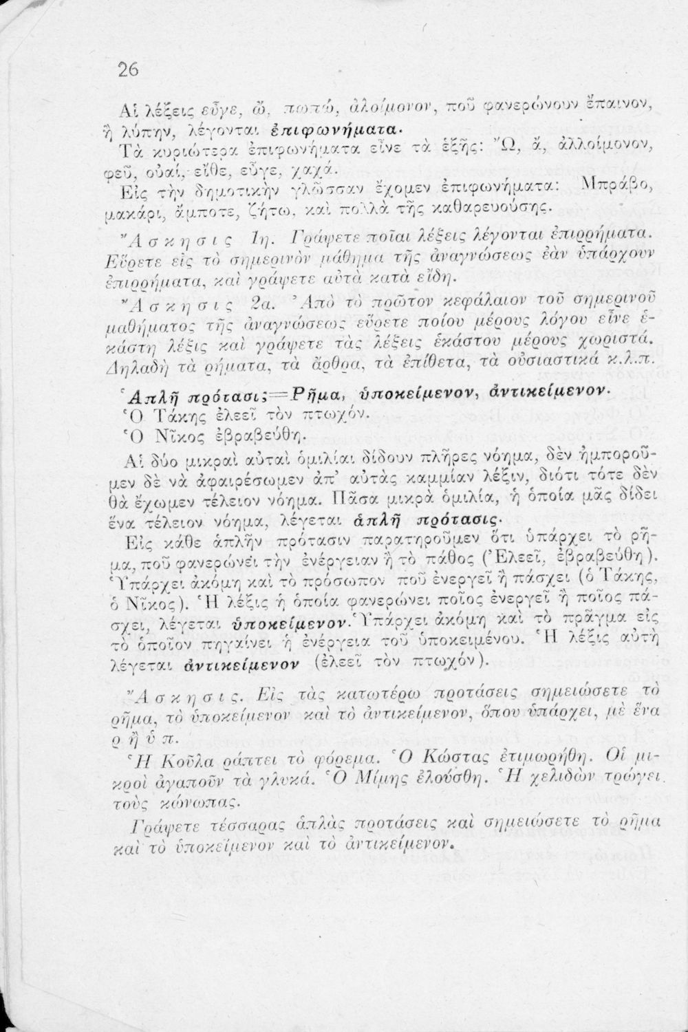 Μαθητικό βοήθημα Ε΄ και ΣΤ΄ Δημοτικού που περιέχει τη γραμματικής της απλής Καθαρεύουσας.