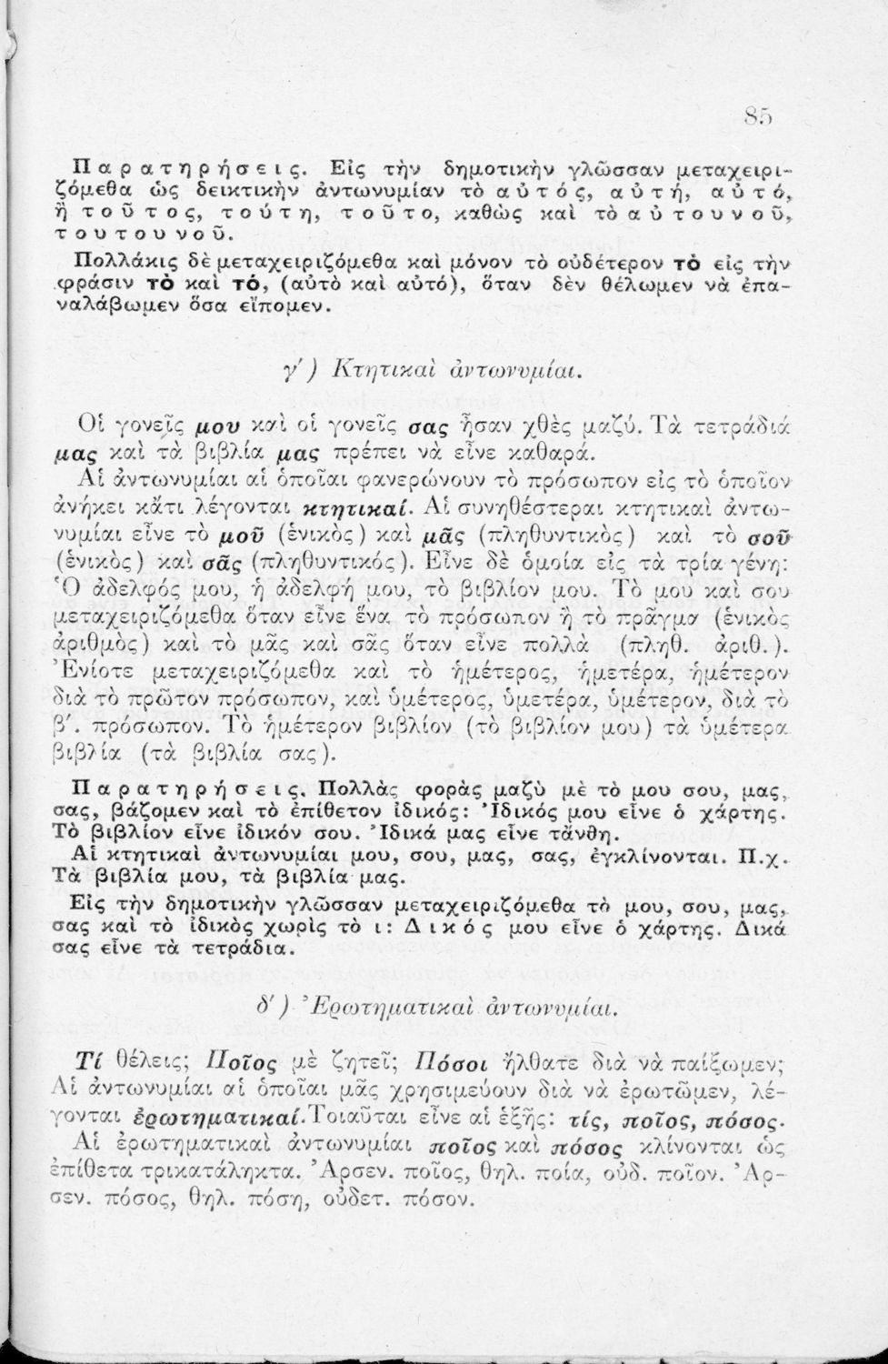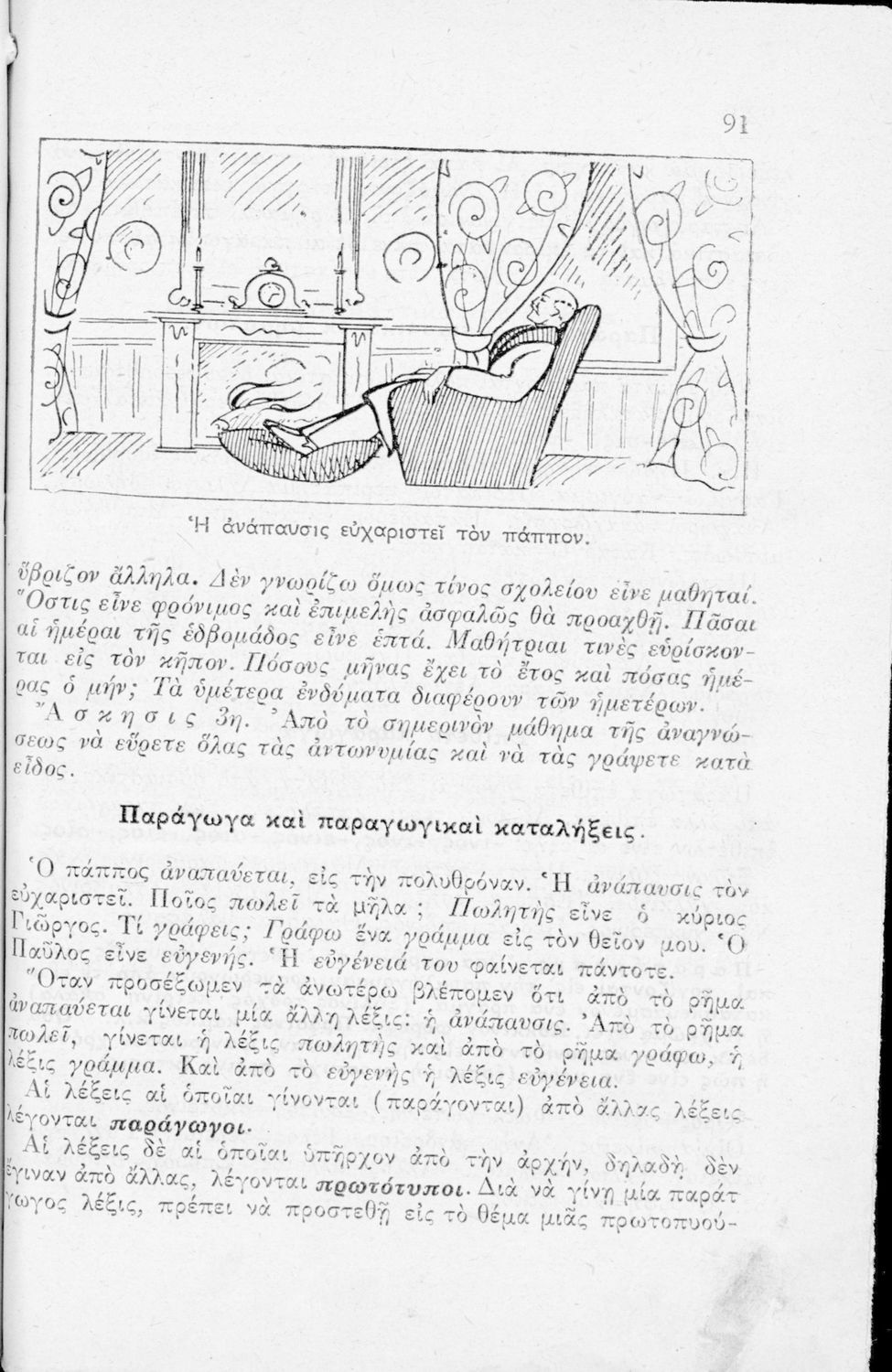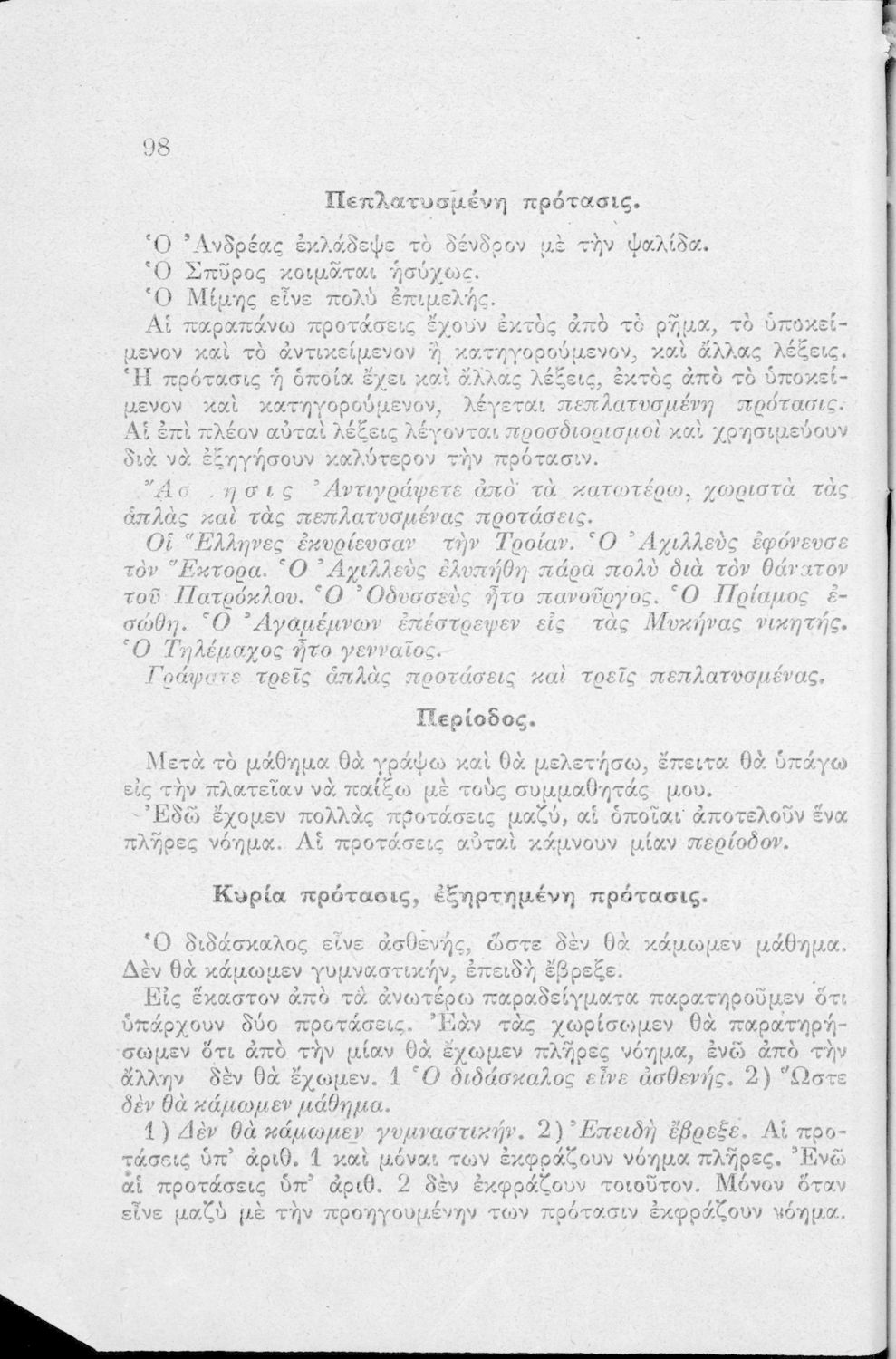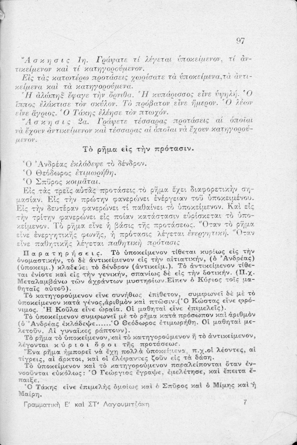 Παρουσίαση περιεχομένου: Μαθητικό βοήθημα Γλώσσας Ε΄ και ΣΤ ΄ Δημοτικού που περιλαμβάνει της γραμματική της καθαρεύουσας και ασκήσεις. Ο συγγραφέας ήταν πρώην Επιθεωρητής Δημοτικών Σχολείων