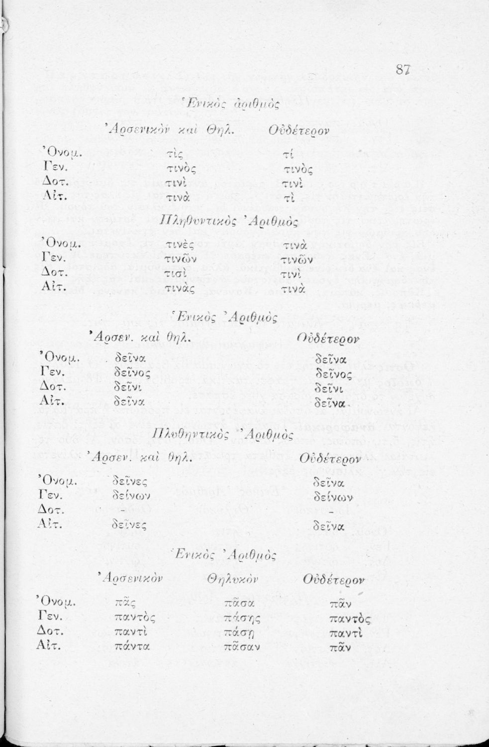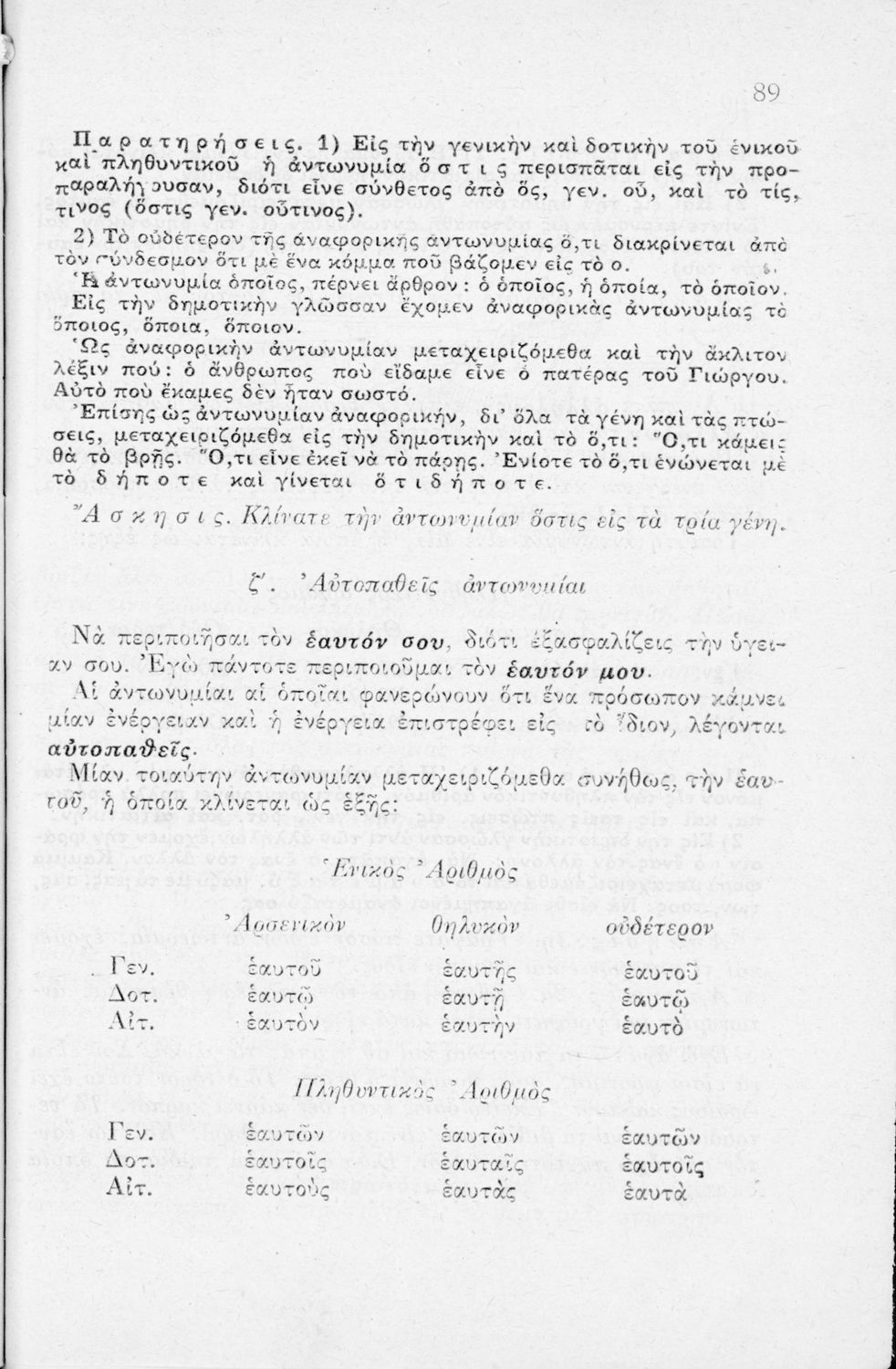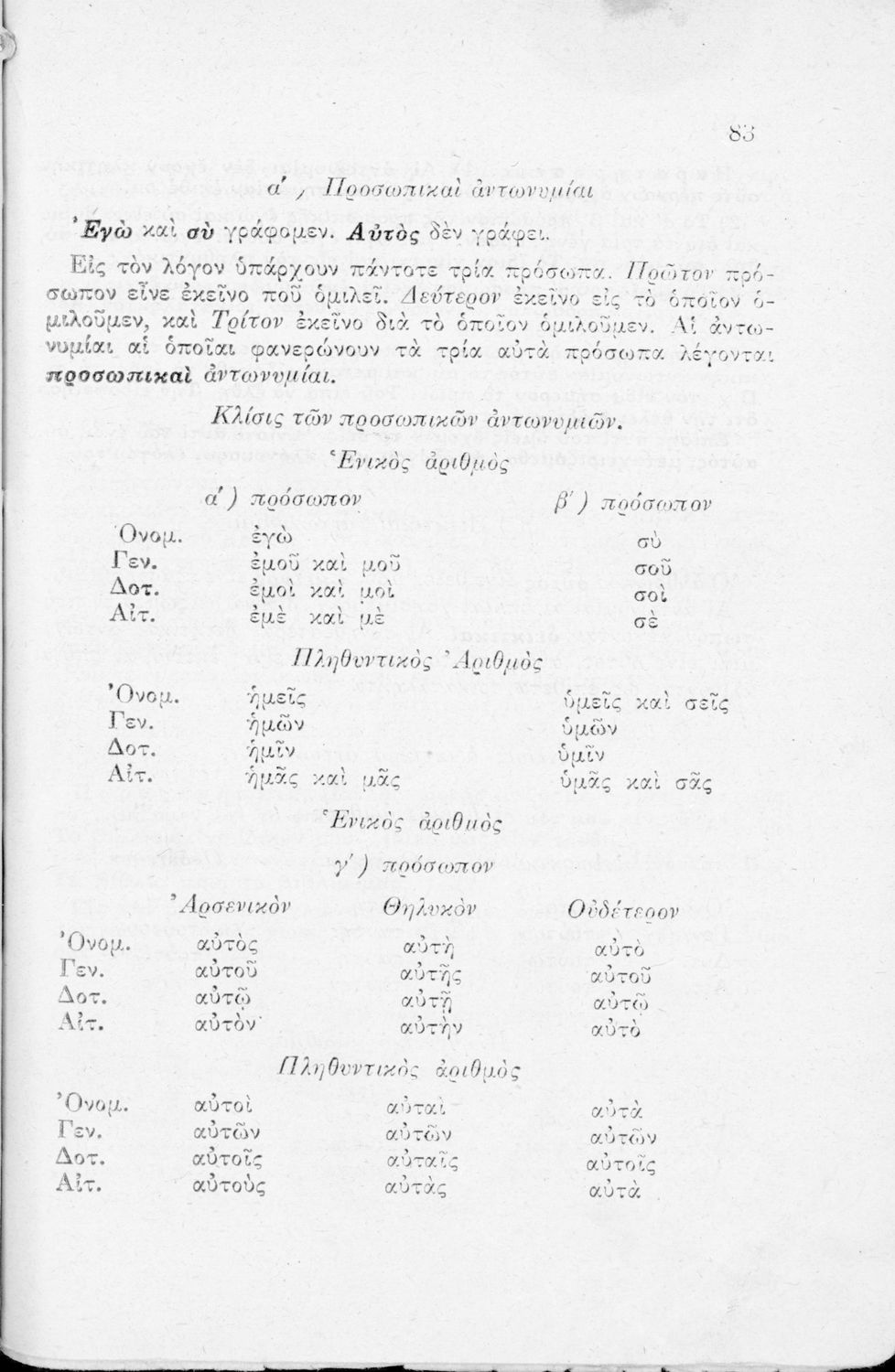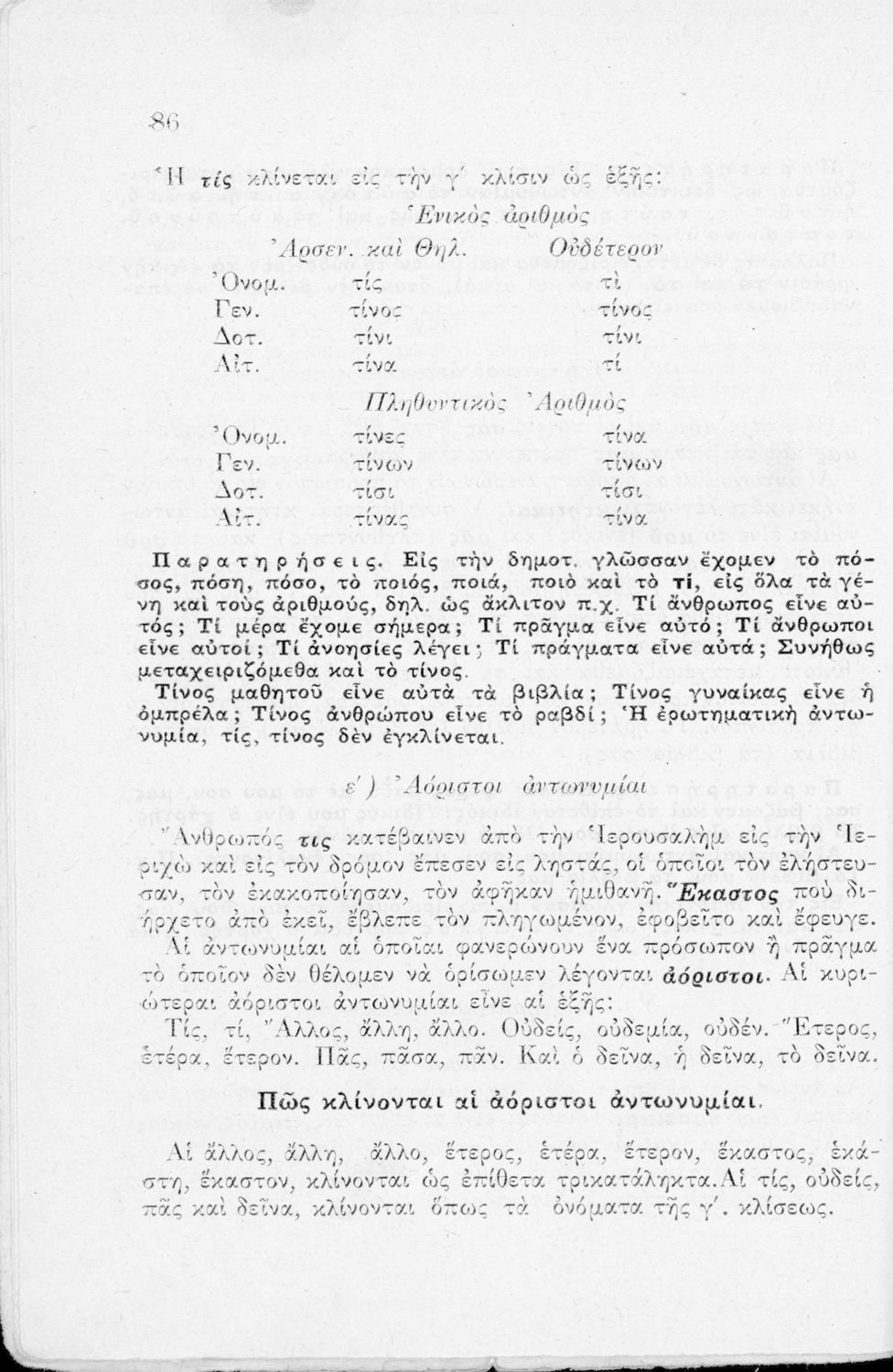 Μαθητικό βοήθημα Ε΄ και ΣΤ΄ Δημοτικού που περιέχει τη γραμματικής της απλής Καθαρεύουσας.