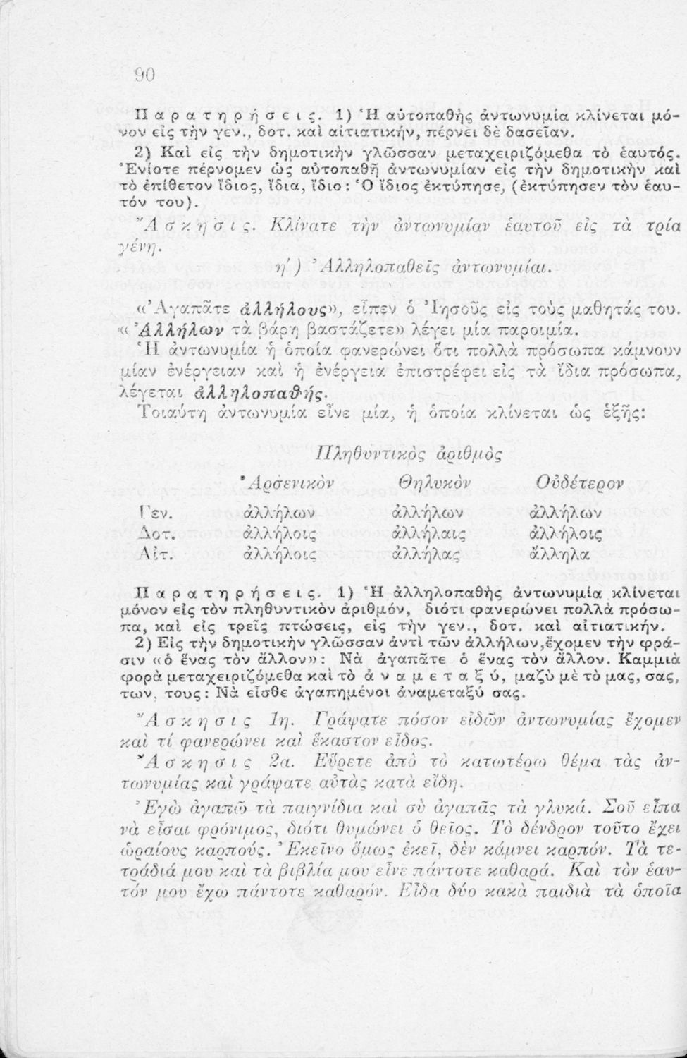 Μαθητικό βοήθημα Γλώσσας Ε΄ και ΣΤ ΄ Δημοτικού που περιλαμβάνει της γραμματική της καθαρεύουσας και ασκήσεις. Ο συγγραφέας ήταν πρώην Επιθεωρητής Δημοτικών Σχολείων