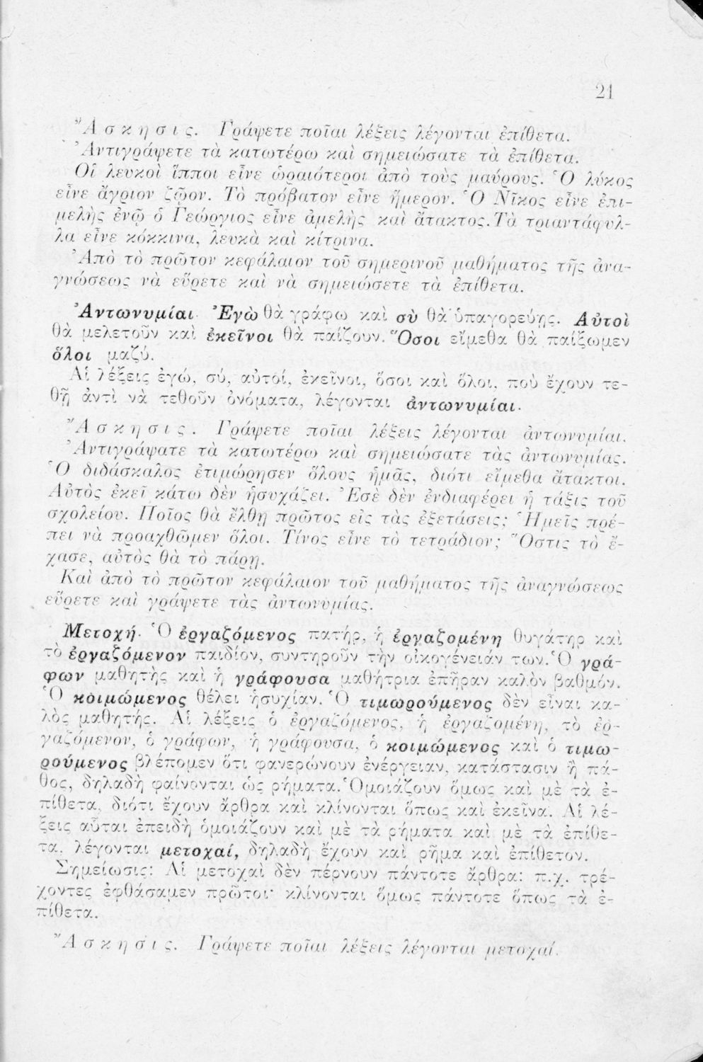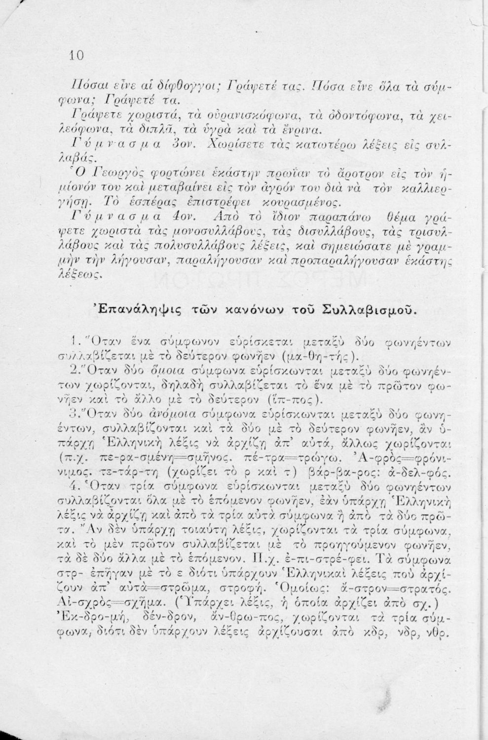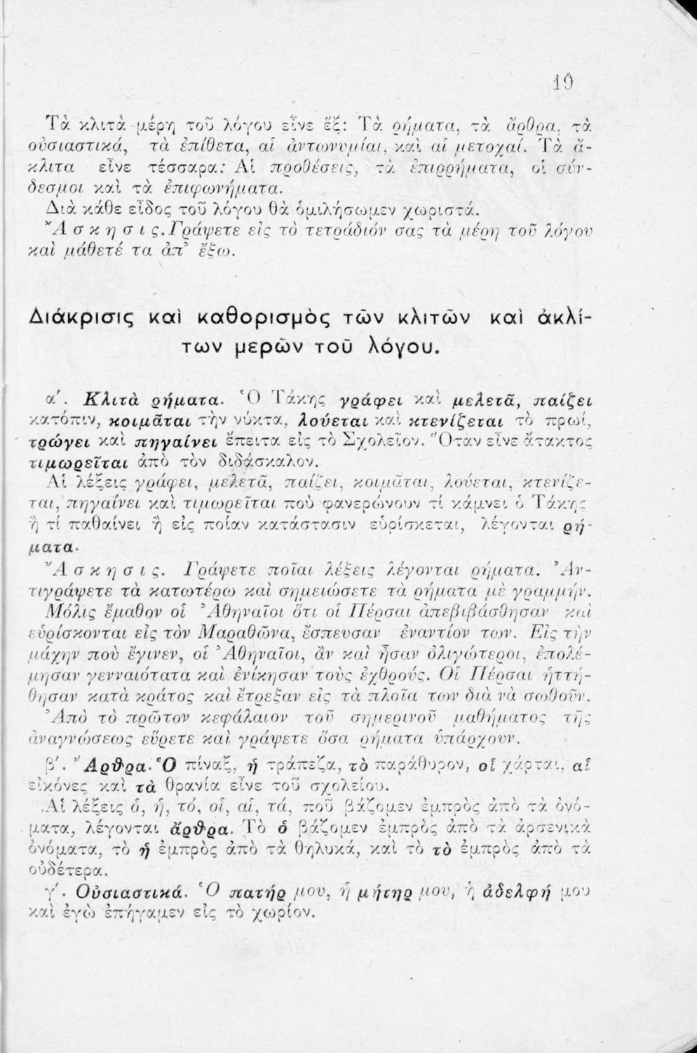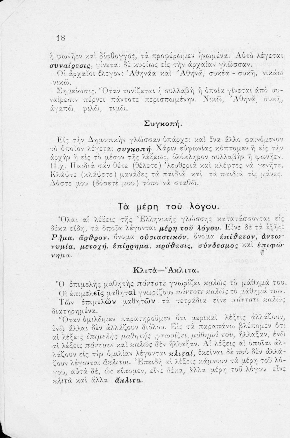Παρουσίαση περιεχομένου: Μαθητικό βοήθημα Γλώσσας Ε΄ και ΣΤ ΄ Δημοτικού που περιλαμβάνει της γραμματική της καθαρεύουσας και ασκήσεις. Ο συγγραφέας ήταν πρώην Επιθεωρητής Δημοτικών Σχολείων