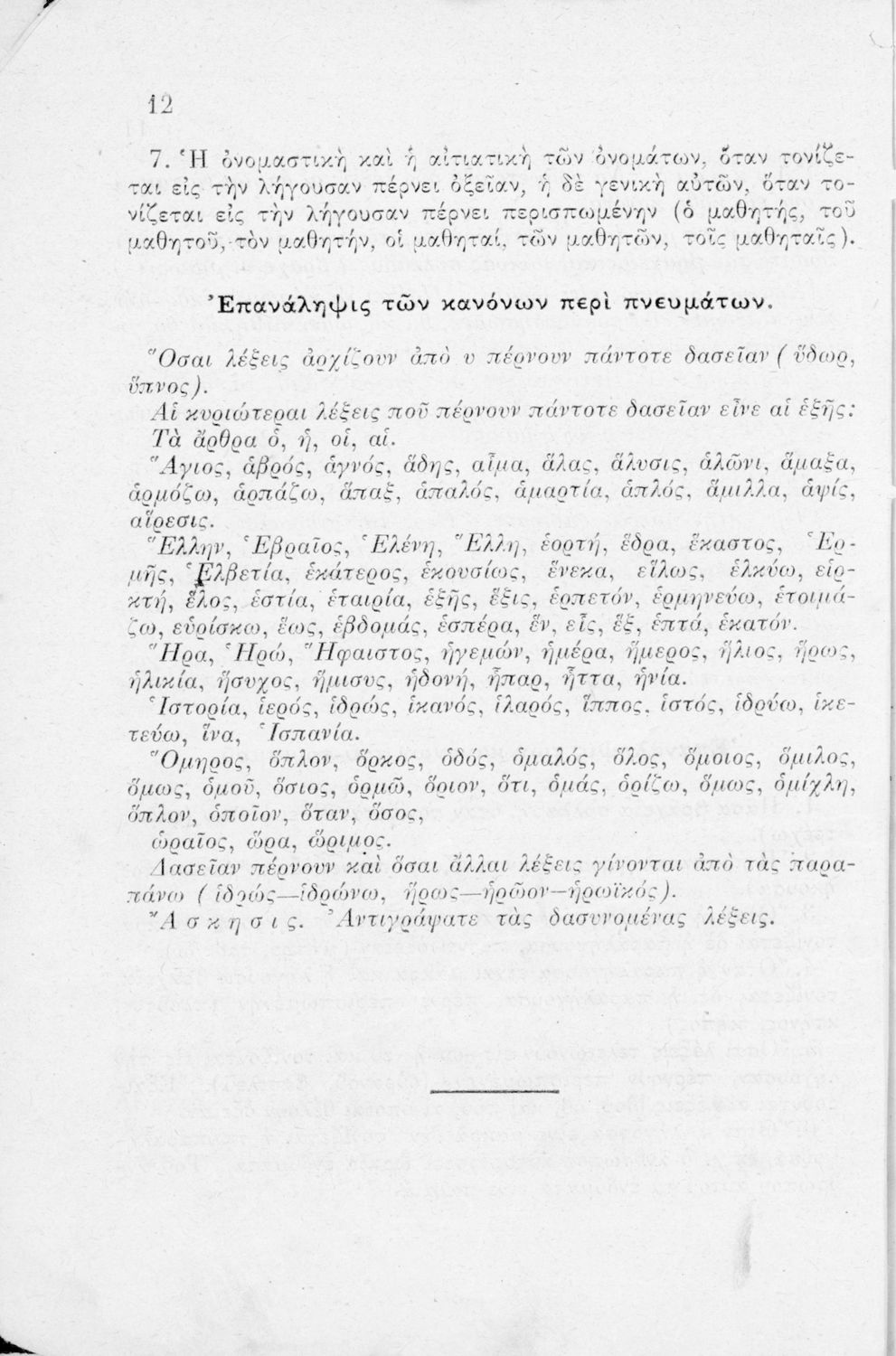 Μαθητικό βοήθημα Ε' και ΣΤ΄ Δημοτικού που περιλαμβάνει τους κανόνες γραμματικής της καθαρεύουσας.
