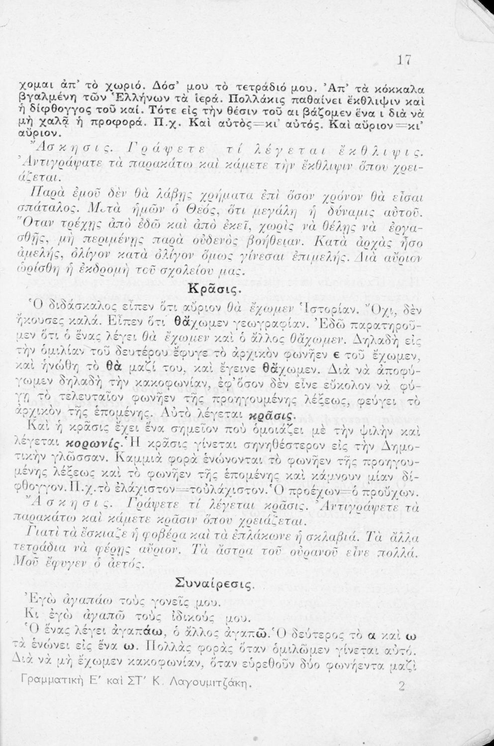 Μαθητικό βοήθημα Γλώσσας Ε΄ και ΣΤ ΄ Δημοτικού που περιλαμβάνει της γραμματική της καθαρεύουσας και ασκήσεις. Ο συγγραφέας ήταν πρώην Επιθεωρητής Δημοτικών Σχολείων