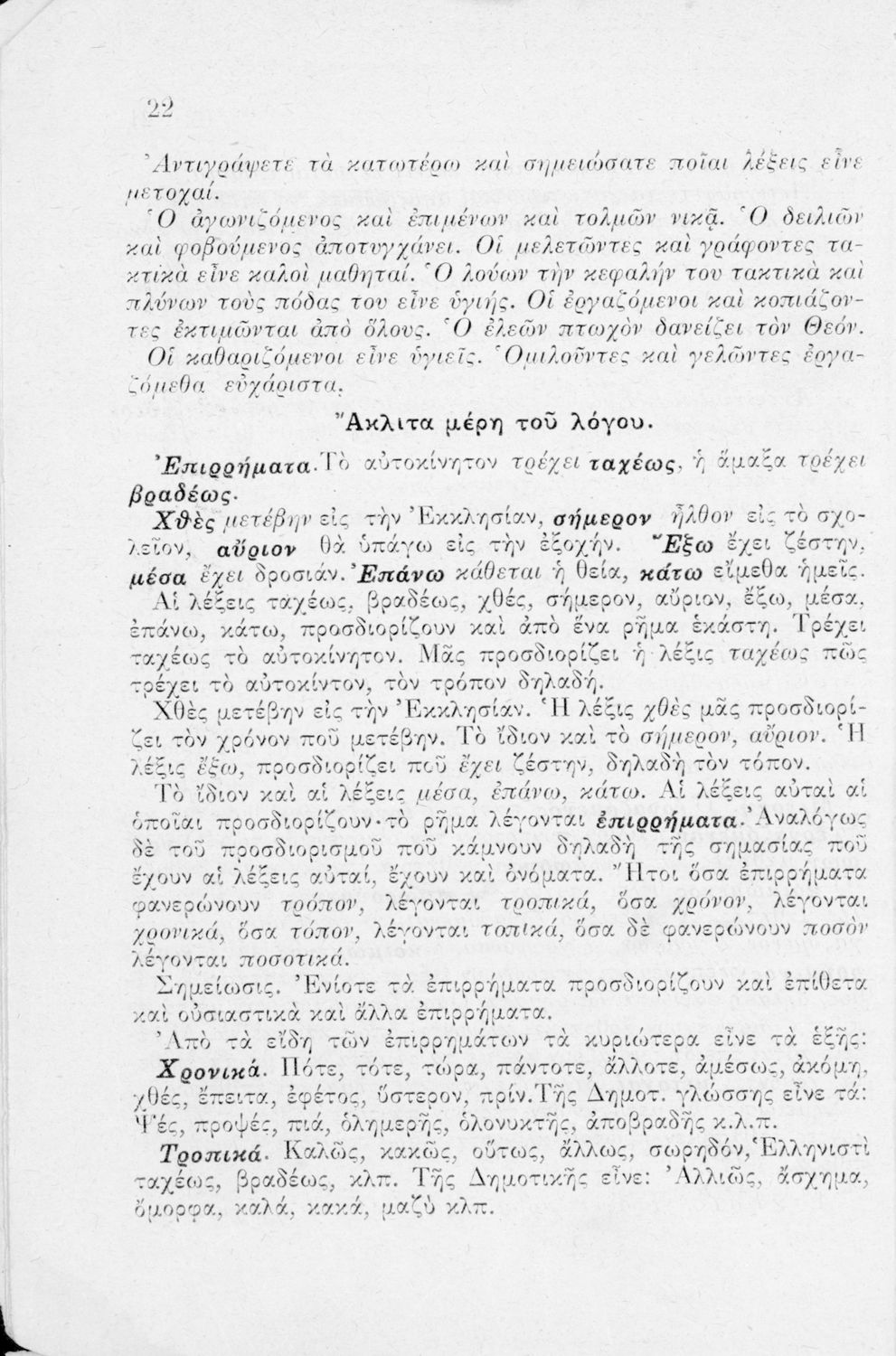 Μαθητικό βοήθημα Ε΄ και ΣΤ΄ Δημοτικού που περιέχει τη γραμματικής της απλής Καθαρεύουσας.