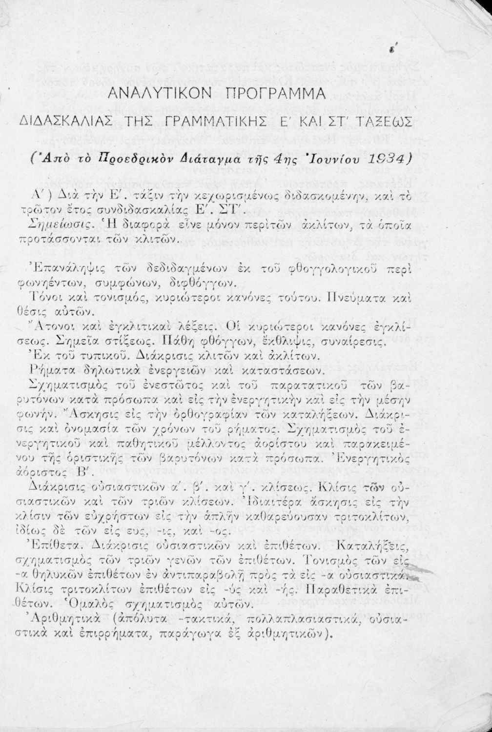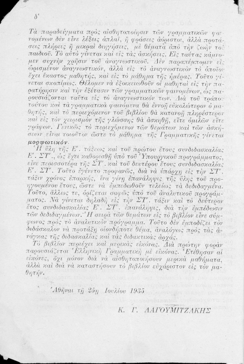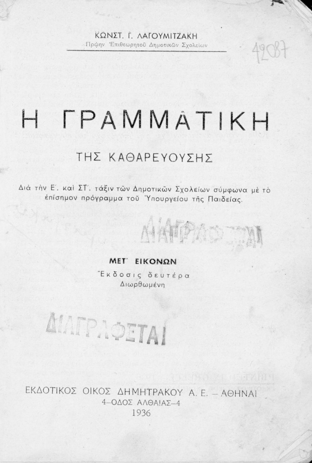 Η Γραμματική της Καθαρευούσης διά την Ε' και ΣΤ΄ τάξιν των Δημοτικών Σχολείων σύμφωνα με το επίσημον πρόγραμμα του Υπουργείου της Παιδείας