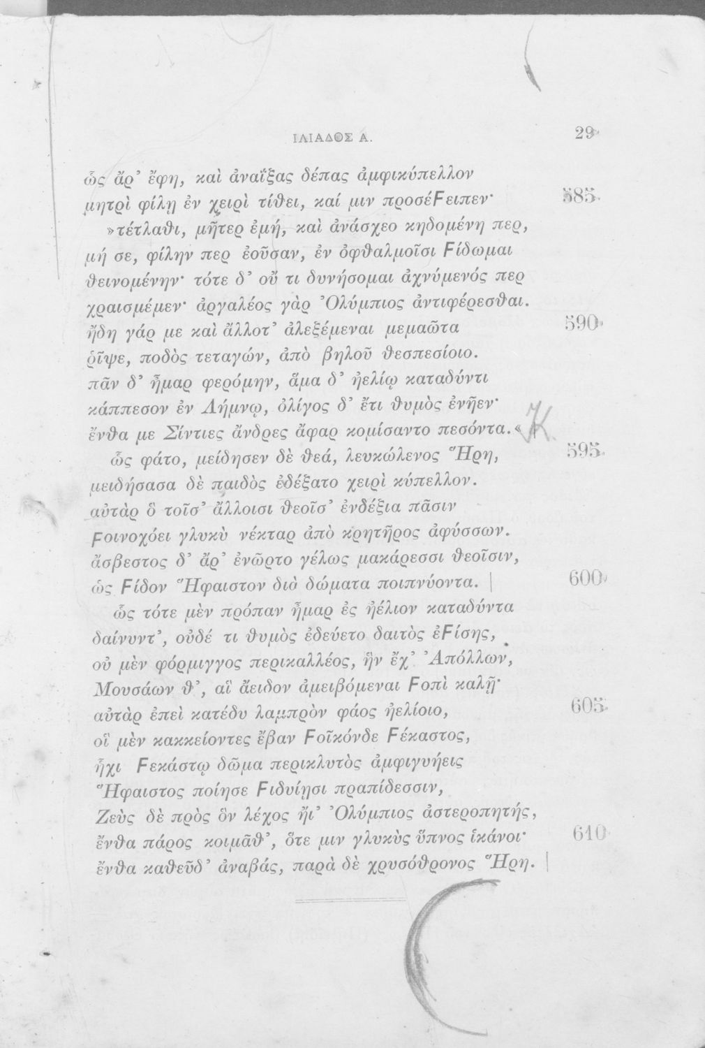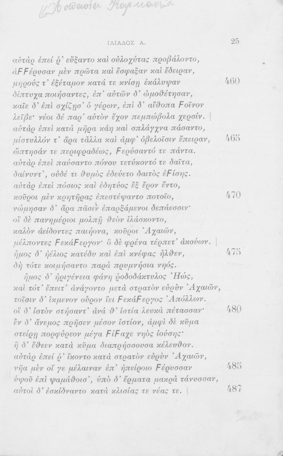 Μαθητικό βοήθημα Αρχαίων Ελληνικών Γυμνασίου που περιλαμβάνει την ραψωδία Α΄ της Ιλιάδας, και ερμηνευτικές, πραγματολογικές και γλωσσικές παρατηρήσεις. Ο συγγραφέας ήταν Γυμνασιάρχης του πρότυπου Κλασικού Γυμνασίου