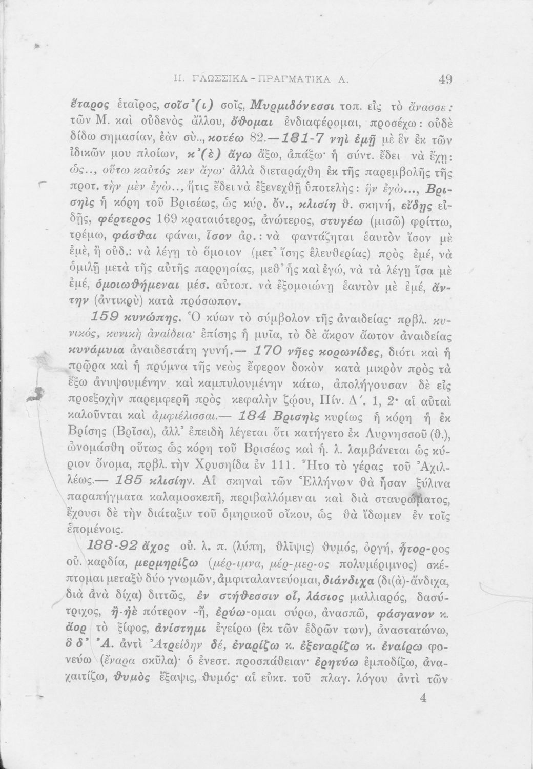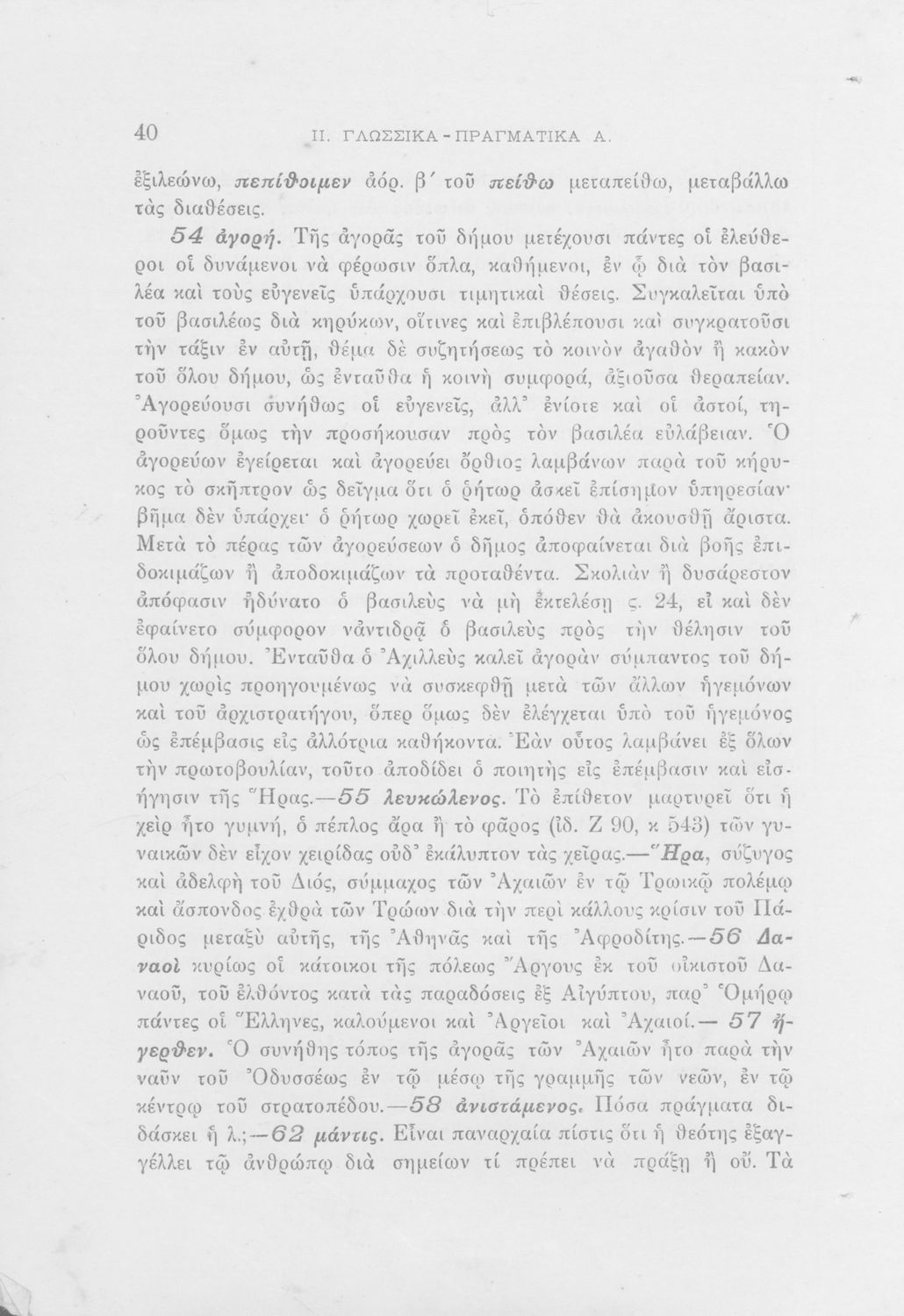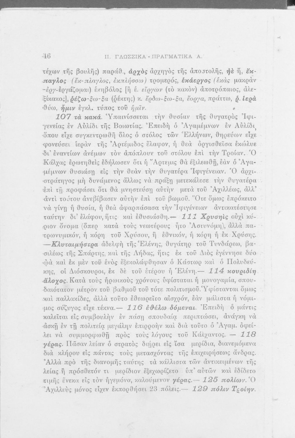 Παρουσίαση περιεχομένου: Μαθητικό βοήθημα Αρχαίων Ελληνικών Γυμνασίου που περιλαμβάνει την ραψωδία Α΄ της Ιλιάδας, και ερμηνευτικές, πραγματολογικές και γλωσσικές παρατηρήσεις. Ο συγγραφέας ήταν Γυμνασιάρχης του πρότυπου Κλασικού Γυμνασίου