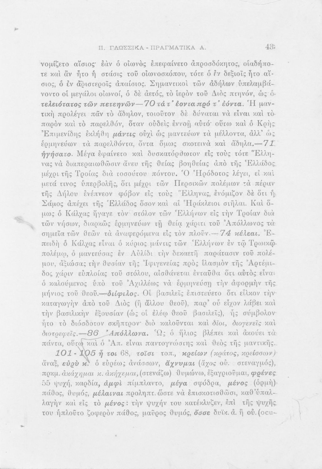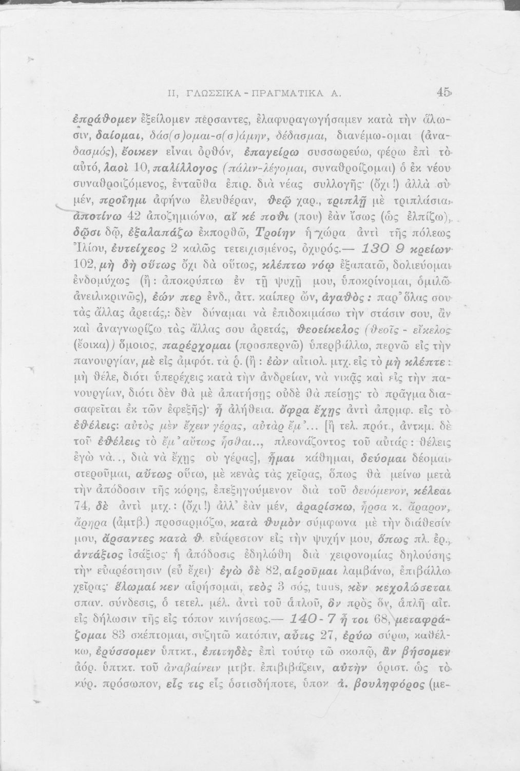 Μαθητικό βοήθημα του Ελληνικού Σχολείου, των Παρθεναγωγείων και του Γυμνασίου για το μάθημα των Αρχαίων Ελληνικών. Περιέχει τις ραψωδίες Ο, Π, Ρ, Σ, Τ, Χ, ψ, Ω από το πρωτότυπο με σχόλια και ερμηνευτικές ...