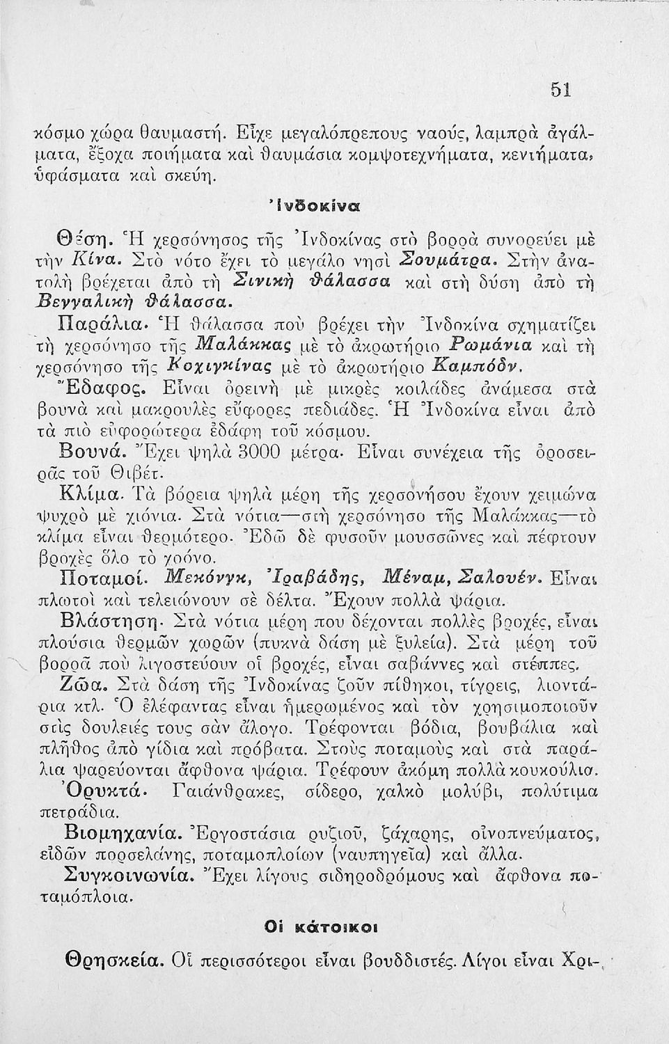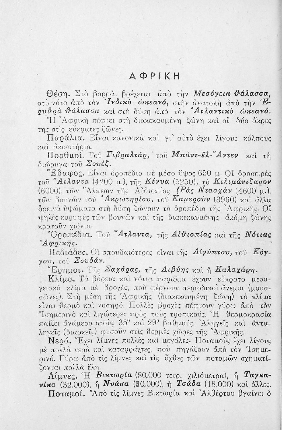 Μαθητικό βοήθημα Γεωγραφίας για την Ε' Δημοτικού. Πρόκειται για βιβλίο φυσικής και μαθηματικής γεωγραφίας. Εξετάζει τις Ηπείρους και τα κράτη τους γεωφυσικά, πολιτικά και οικονομικά χωρίζοντας τη μελέτη σε Νέο και Παλαιό Κόσμο. Ο συγγραφέας ήταν Δημοδιδάσκαλος στην Πρότυπη Παιδαγωγική Ακαδημία Τρίπολης.