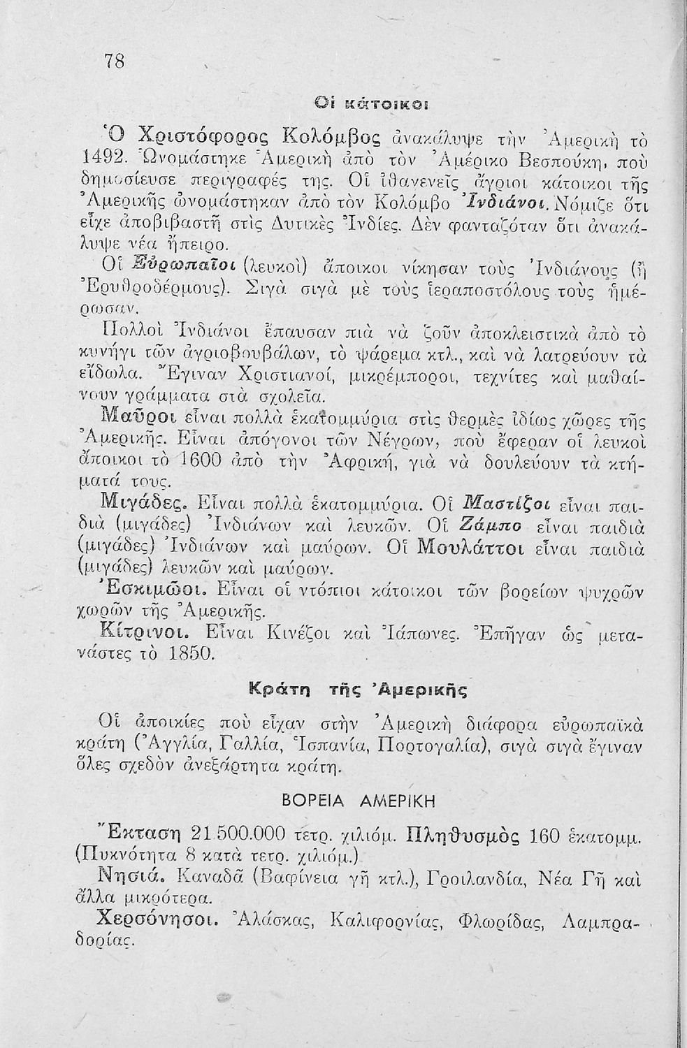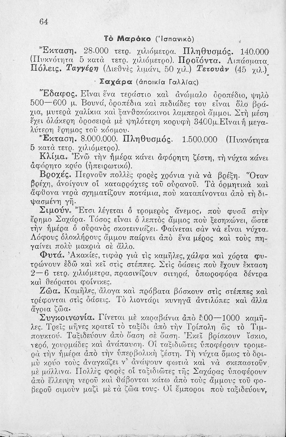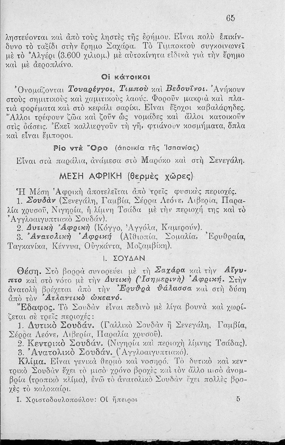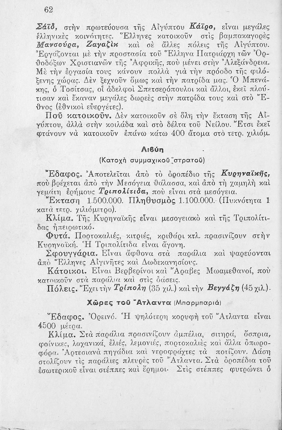Μαθητικό βοήθημα Γεωγραφίας για την Ε' Δημοτικού. Πρόκειται για βιβλίο φυσικής και μαθηματικής γεωγραφίας. Εξετάζει τις Ηπείρους και τα κράτη τους γεωφυσικά, πολιτικά και οικονομικά χωρίζοντας τη μελέτη σε Νέο και Παλαιό Κόσμο. Ο συγγραφέας ήταν Δημοδιδάσκαλος στην Πρότυπη Παιδαγωγική Ακαδημία Τρίπολης.