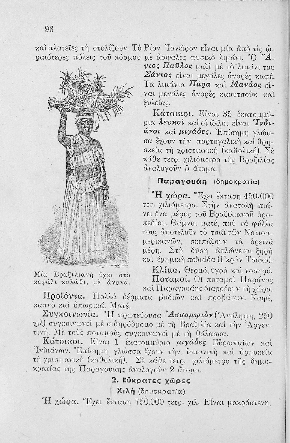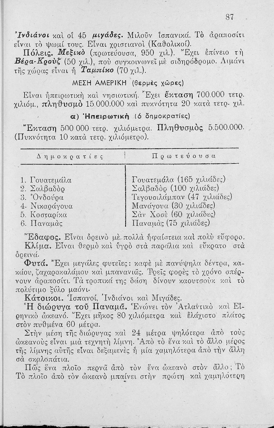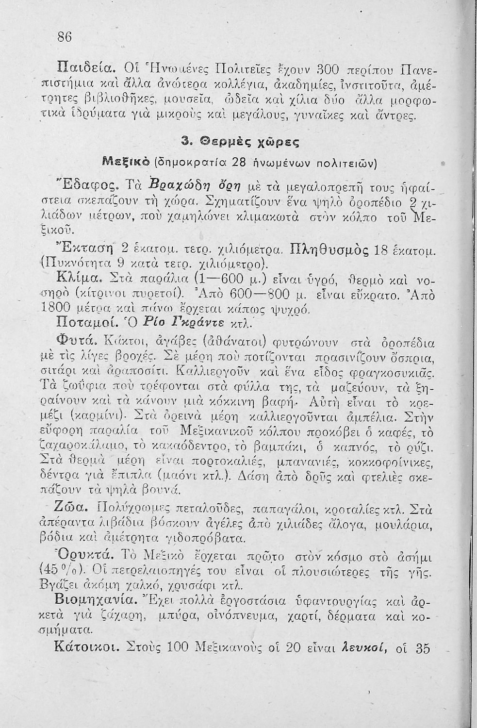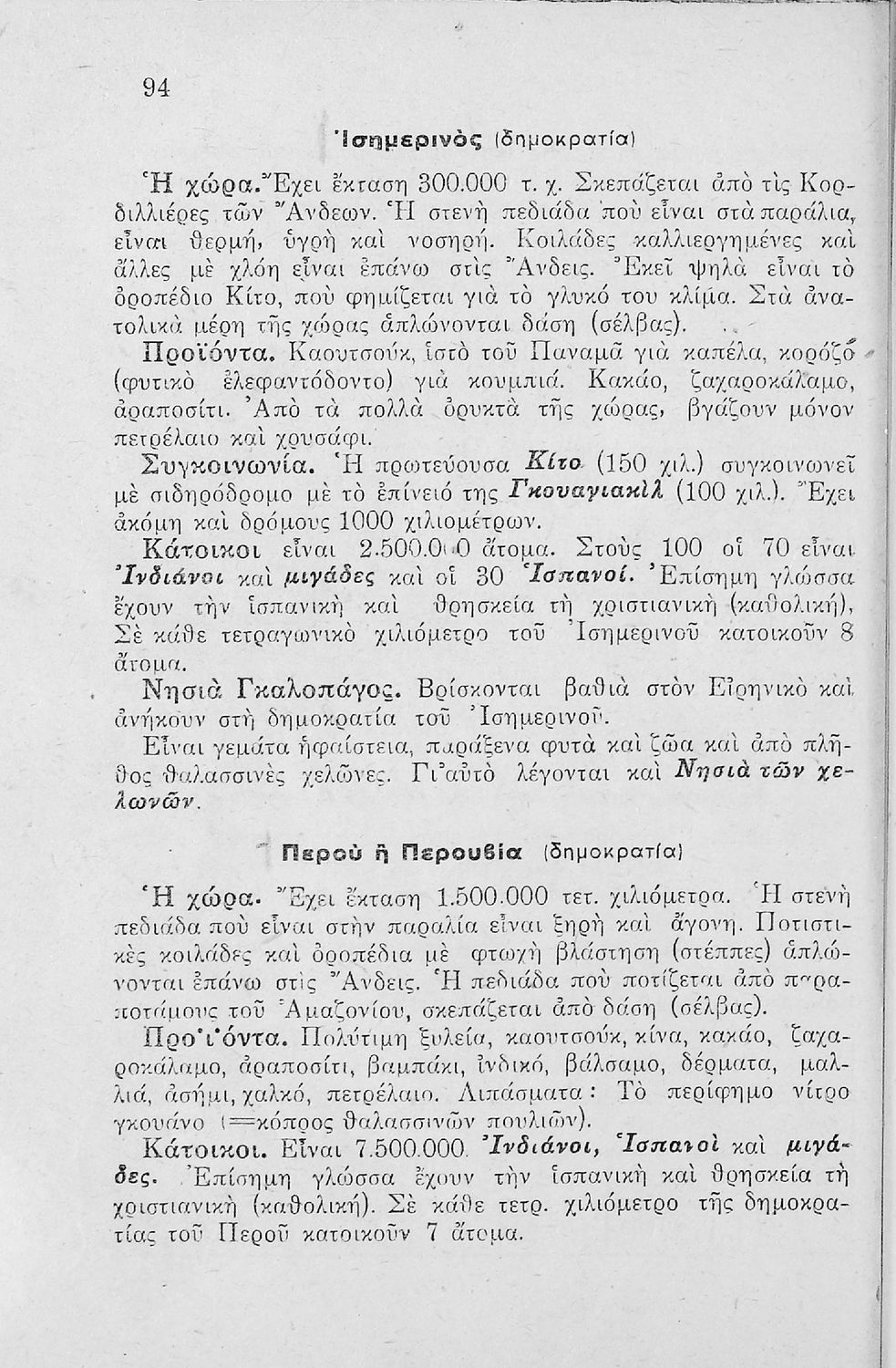 Βαθμίδα εκπαίδευσης: Πρωτοβάθμια Τάξη: Ε' Δημοτικού Μάθημα: Γεωγραφία Γλώσσα: Δημοτική Παρουσίαση περιεχομένου: Μαθητικό βοήθημα Γεωγραφίας για την Ε' Δημοτικού. Πρόκειται για βιβλίο φυσικής και μαθηματικής γεωγραφίας. Εξετάζει τις Ηπείρους και τα κράτη τους γεωφυσικά, πολιτικά και οικονομικά χωρίζοντας τη μελέτη σε Νέο και Παλαιό Κόσμο. Ο συγγραφέας ήταν Δημοδιδάσκαλος στην Πρότυπη Παιδαγωγική Ακαδημία Τρίπολης. |