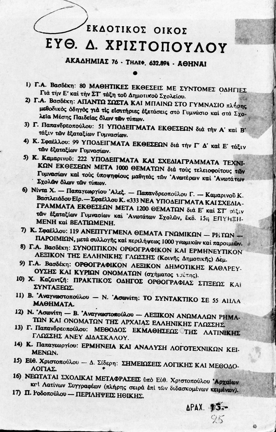 Εκδότης: Ευθ. Δ. Χριστόπουλος