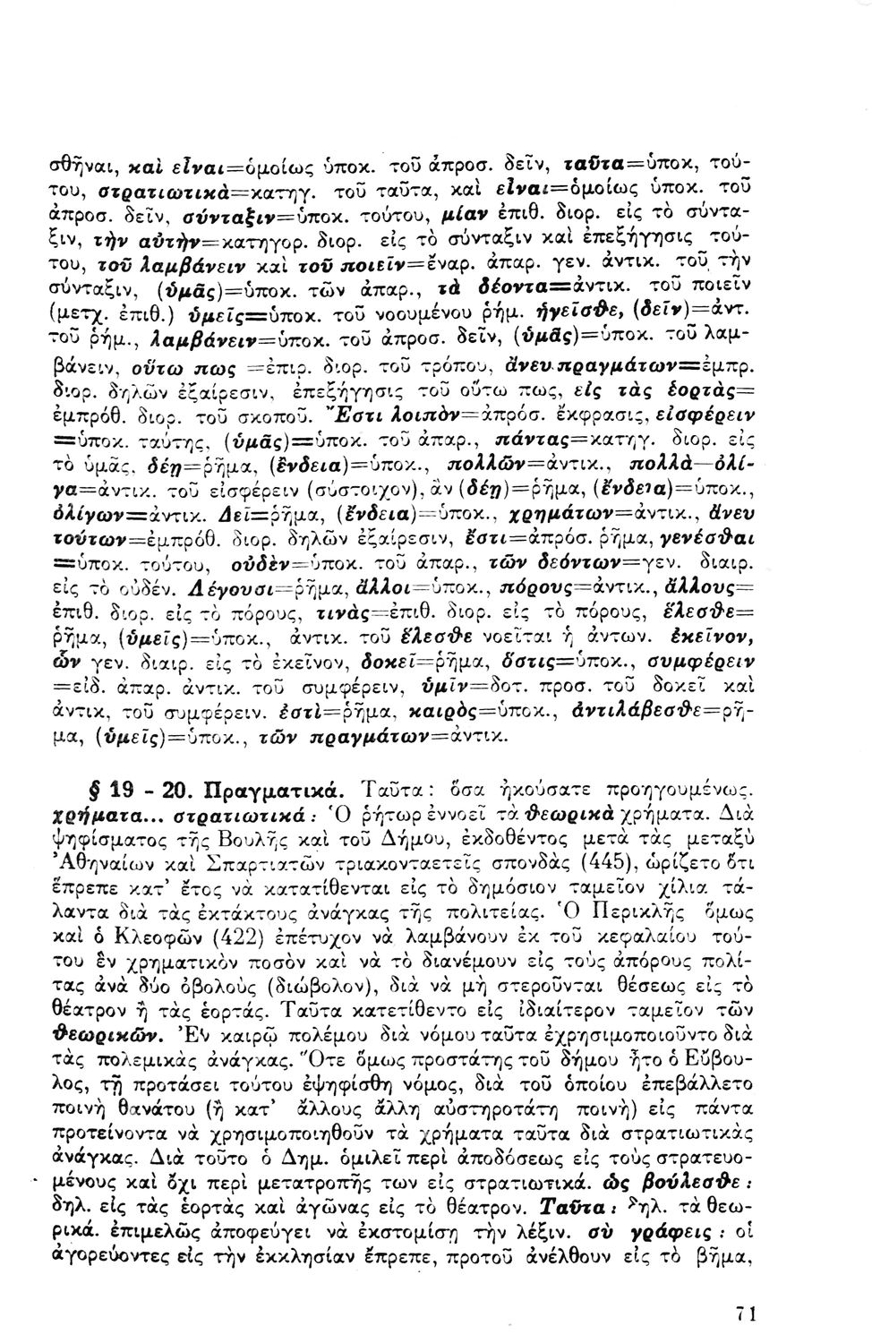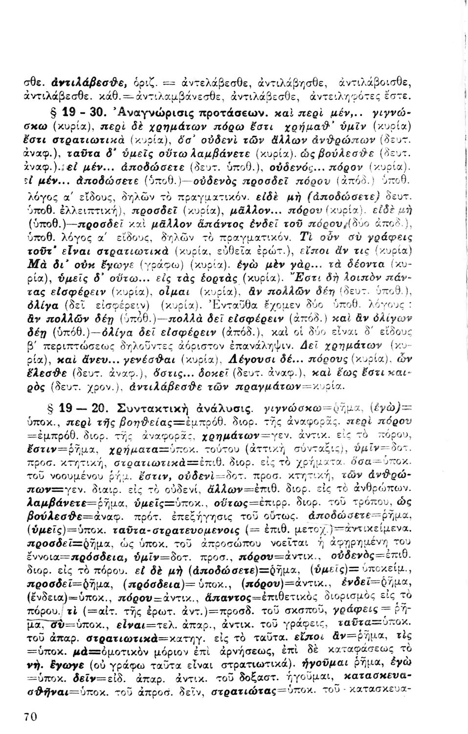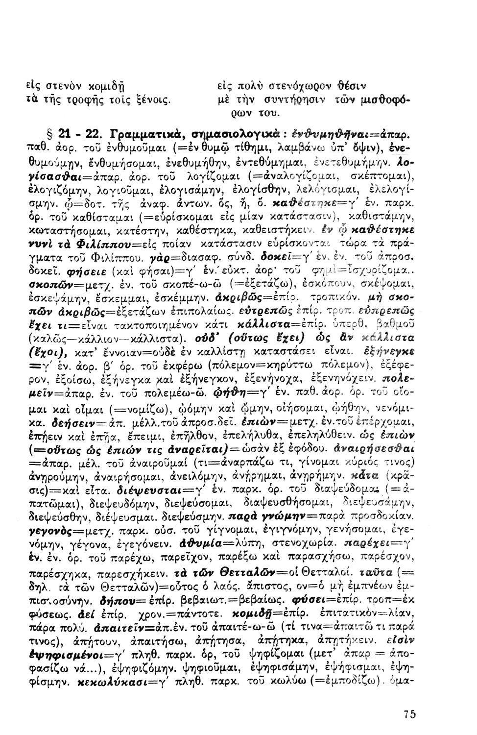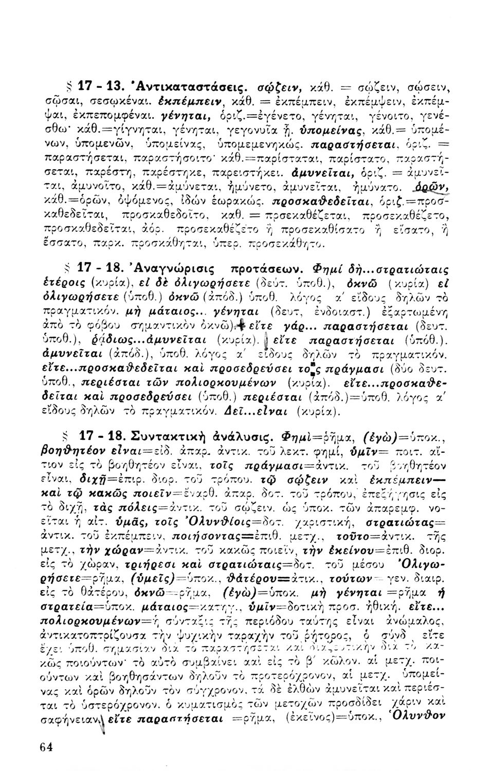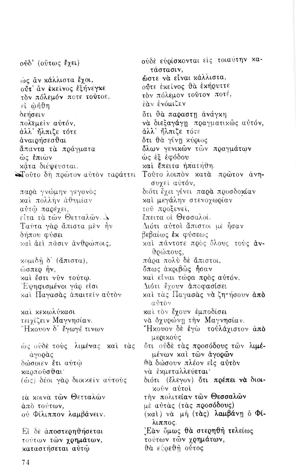 Μαθητικό βοήθημα Αρχαίων Ελληνικών Ε΄ Εξαταξίου Γυμνασίου που περιλαμβάνει μετάφραση των Α΄ και Β΄ Ολυνθιακών Λόγων του Δημοσθένη, και γραμματικές, ερμηνευτικές και συντακτικές παρατηρήσεις.