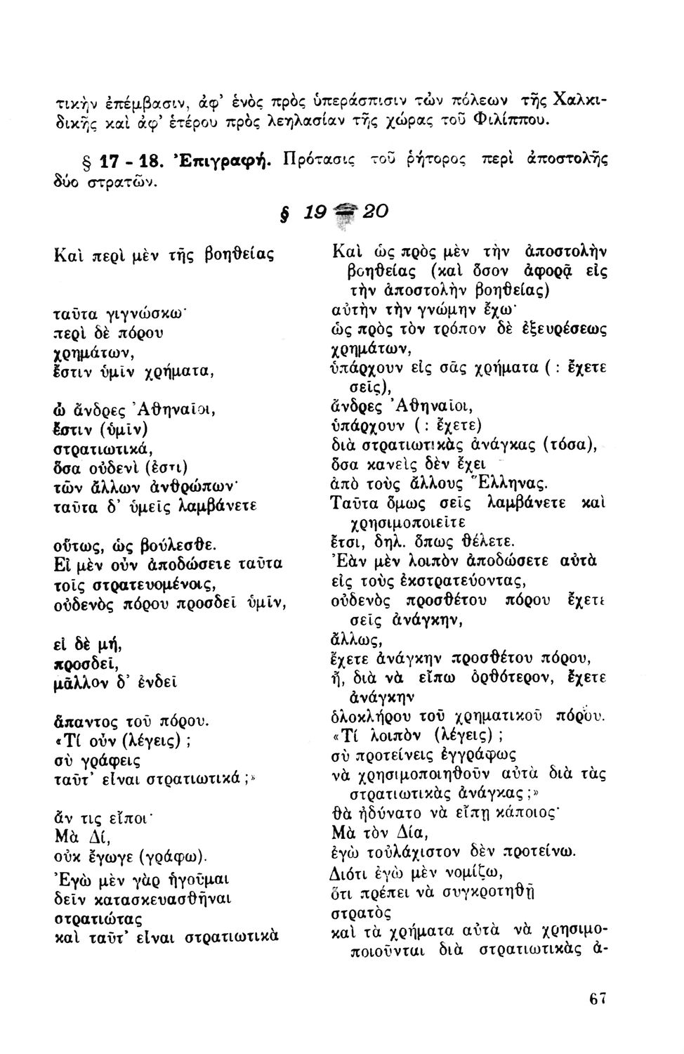 Σχολικό εγχειρίδιο Αρχαίων Ελληνικών Δ΄ Γυμνασίου που περιλαμβάνει τους Ολυνθιακούς Α΄ και Β΄ και τους Φιλιππικούς Α΄ και Β' του Δημοσθένη, τον Λόγο κατά Λεωκράτους του Λυκούργου και Επιστολές του Ισοκράτη, ...
