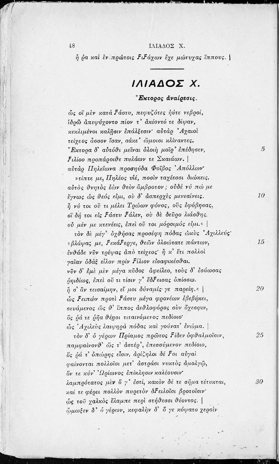 Μαθητικό βοήθημα του Ελληνικού Σχολείου, των Παρθεναγωγείων και του Γυμνασίου για το μάθημα των Αρχαίων Ελληνικών. Περιέχει τις ραψωδίες Ο, Π, Ρ, Σ, Τ, Χ, ψ, Ω από το πρωτότυπο με σχόλια και ερμηνευτικές ...