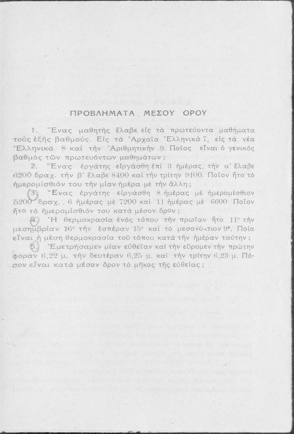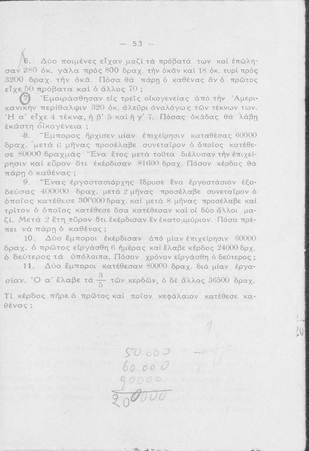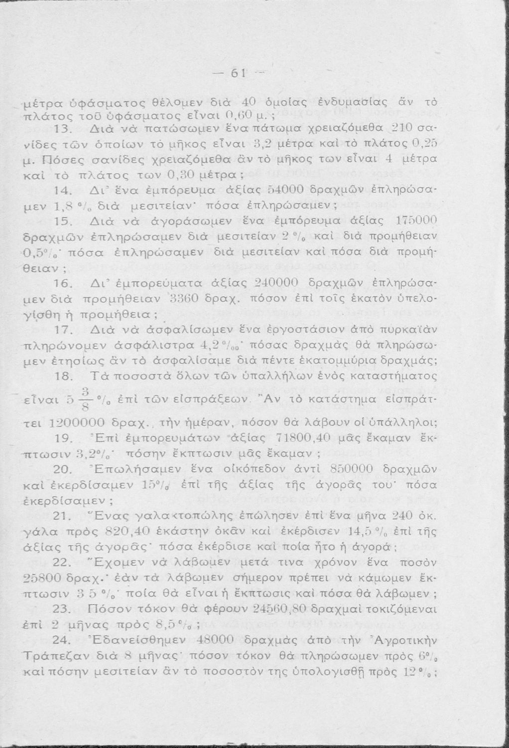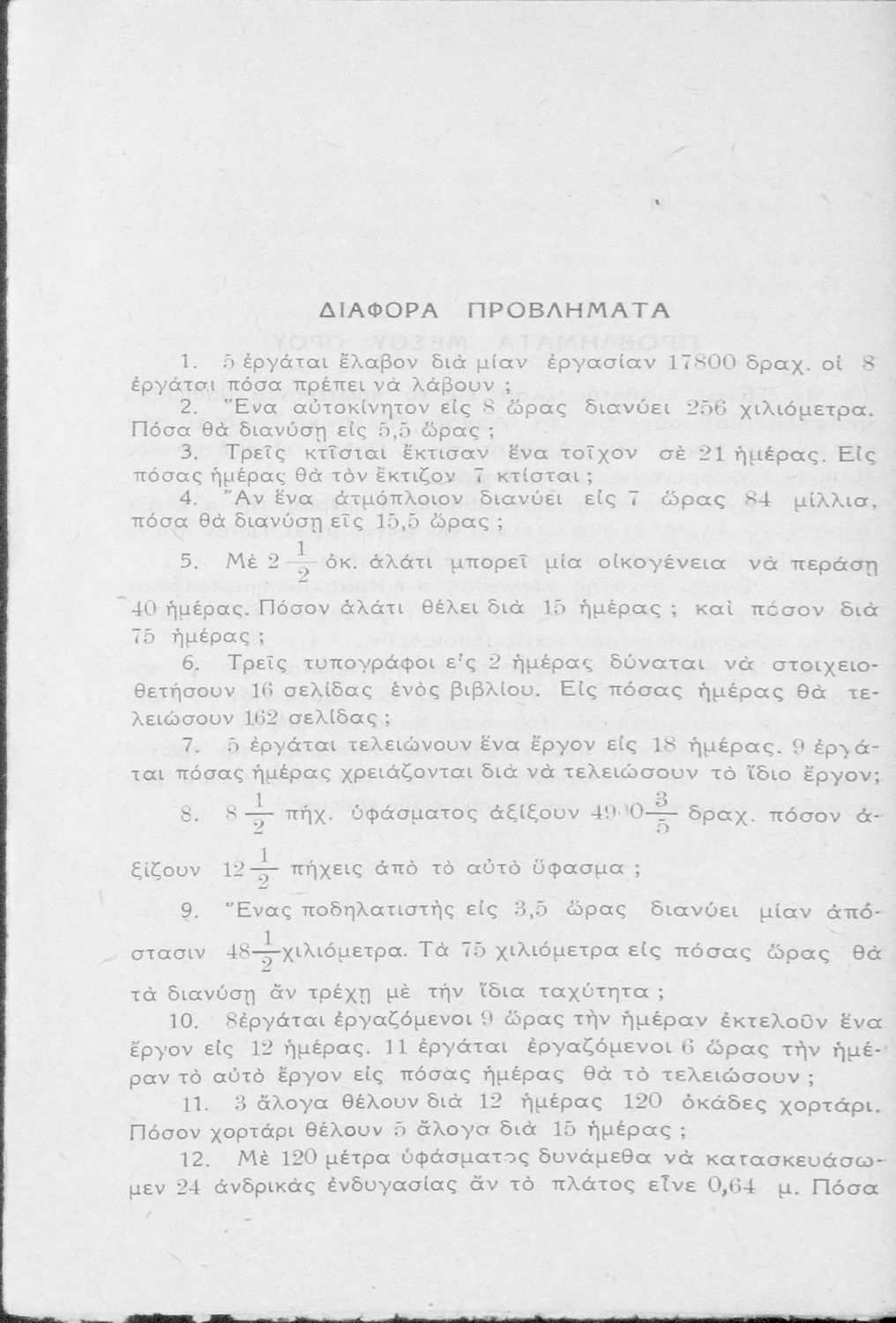 Αριθμητικά προβλήματα δια τους μαθητάς της ΣΤ΄ τάξεως Δημοτικών Σχολείων
