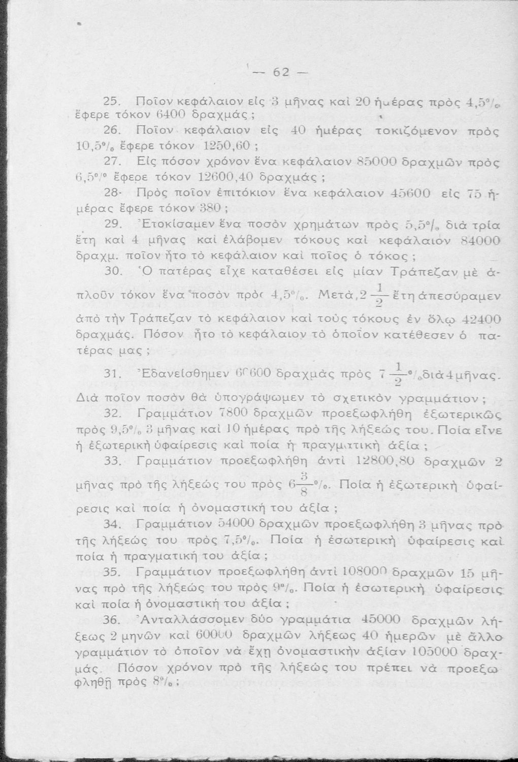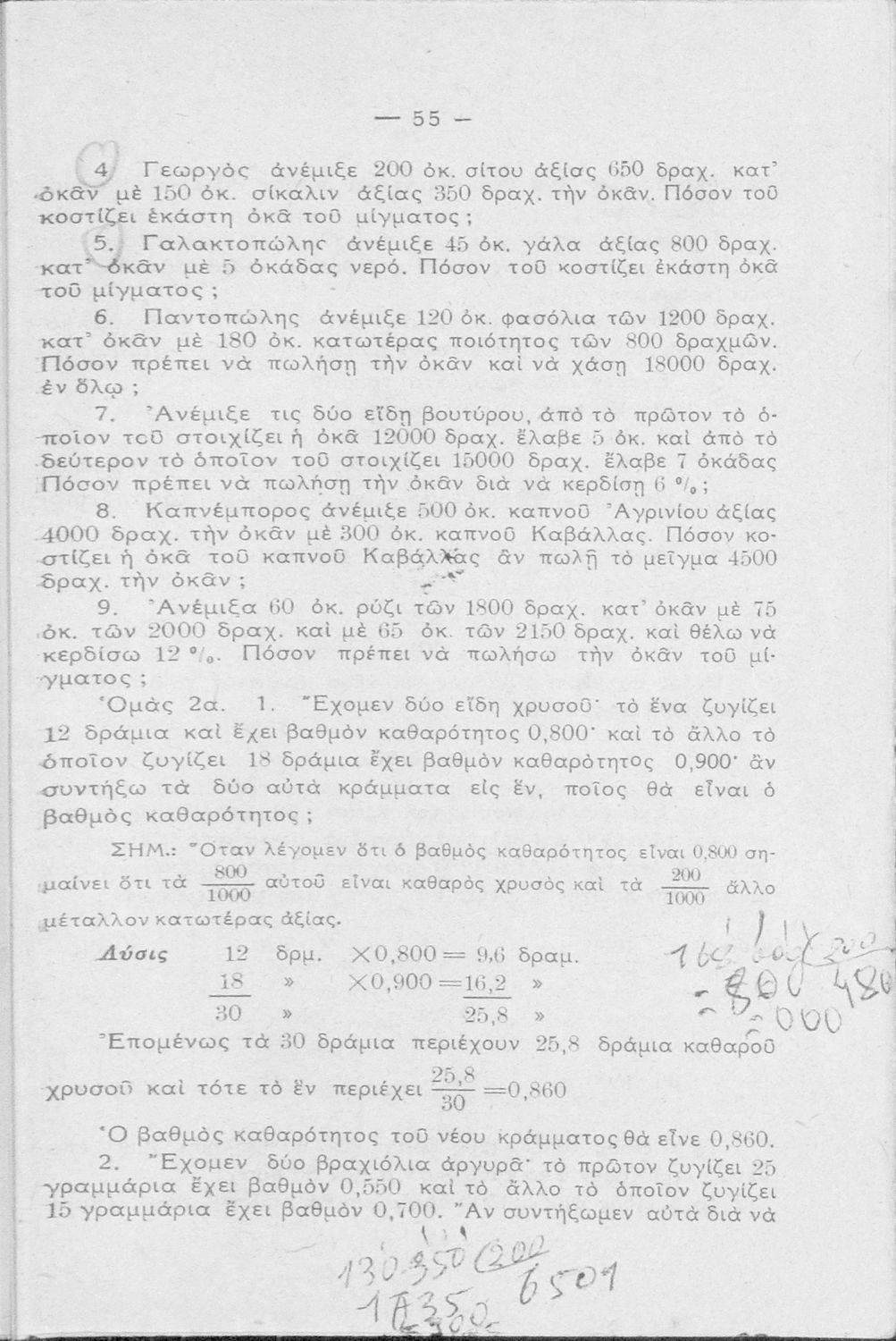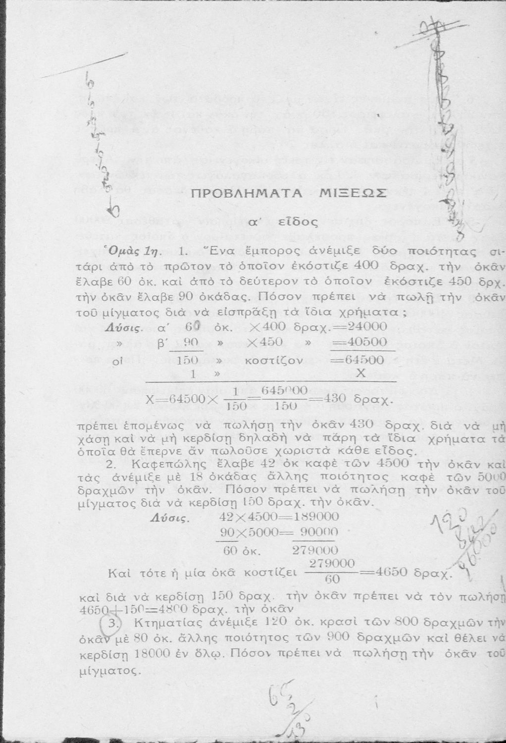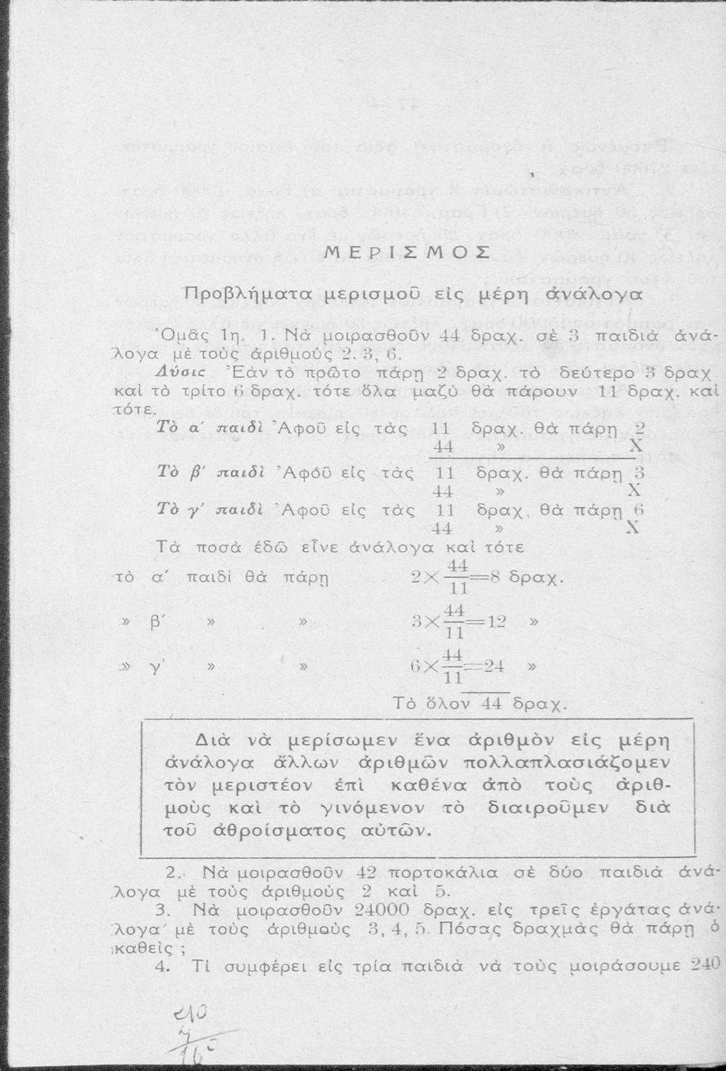 Αριθμητικά προβλήματα δια τους μαθητάς της ΣΤ΄ τάξεως Δημοτικών Σχολείων