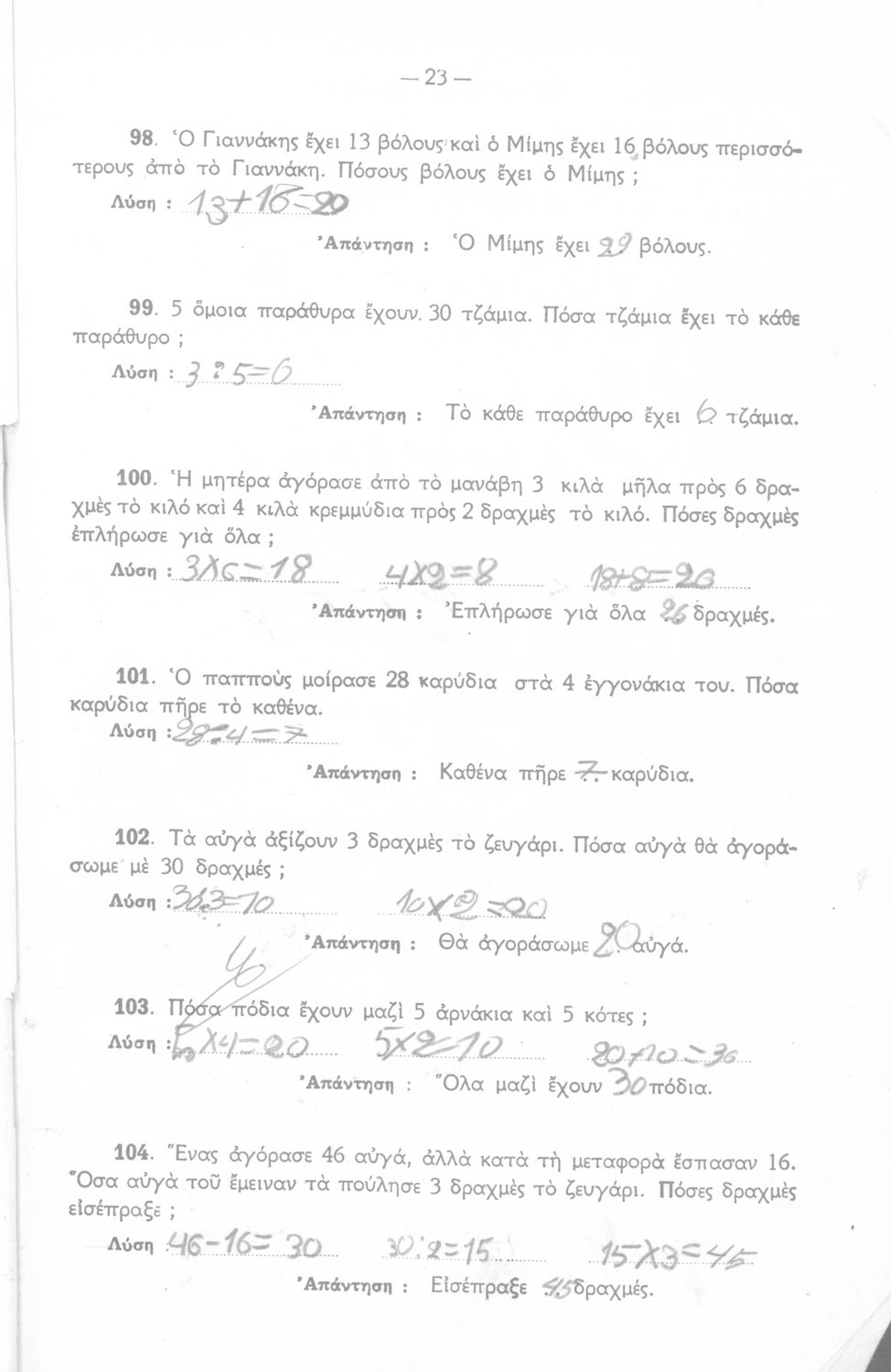 Μαθητικό βοήθημα Μαθηματικών ΣΤ΄ Δημοτικού που περιλαμβάνει αριθμητικά προβλήματα με έμφαση στη λογιστική εφαρμογή της αριθμητικής.