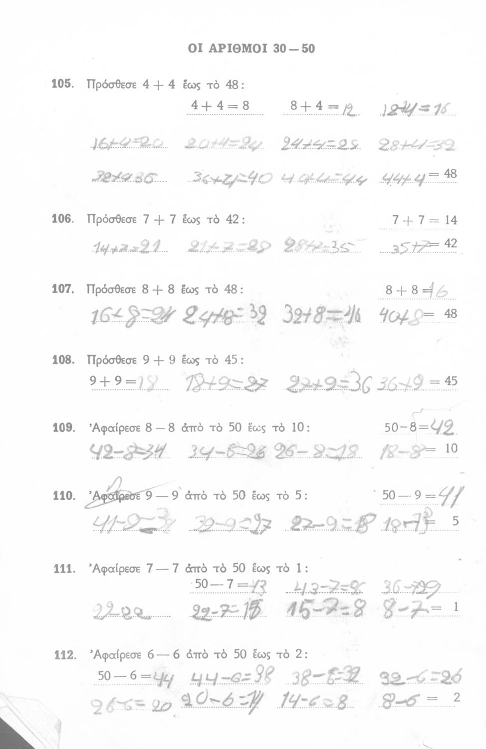 Μαθητικό βοήθημα Αριθμητικής Β΄ Δημοτικού που περιλαμβάνει μόνο ασκήσεις και αριθμητικές πράξεις από το 1-50.