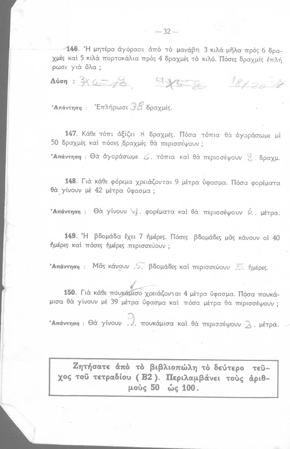 Τετράδιον Αριθμητικής δευτέρας τάξεως
