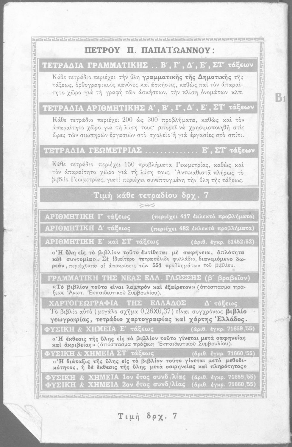 Τίτλος: Τετράδιον Αριθμητικής δευτέρας τάξεως