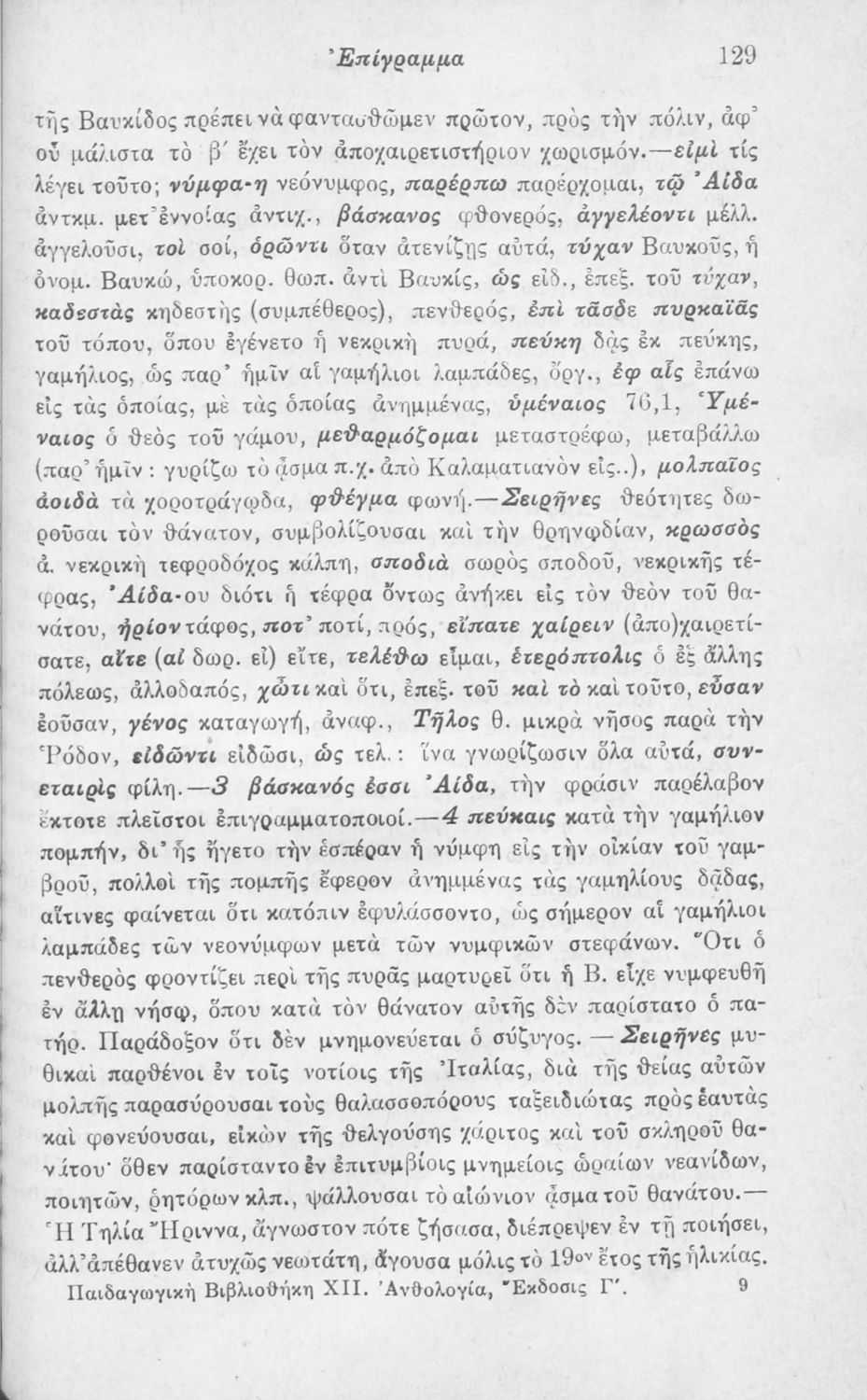 Μαθητικό βοήθημα Αρχαίων Ελληνικών Γ΄ Γυμνασίου που περιλαμβάνει ποιήματα αρχαίων λυρικών, και πραγματολογικές και λεξιλογικές παρατηρήσεις. Περιέχει και παρτιτούρες με ύμνους. Ο συγγραφέας ήταν Γυμνασιάρχης στο Διδασκαλείο και στο πρότυπο Κλασσικό Γυμνάσιο της Αθήνας.