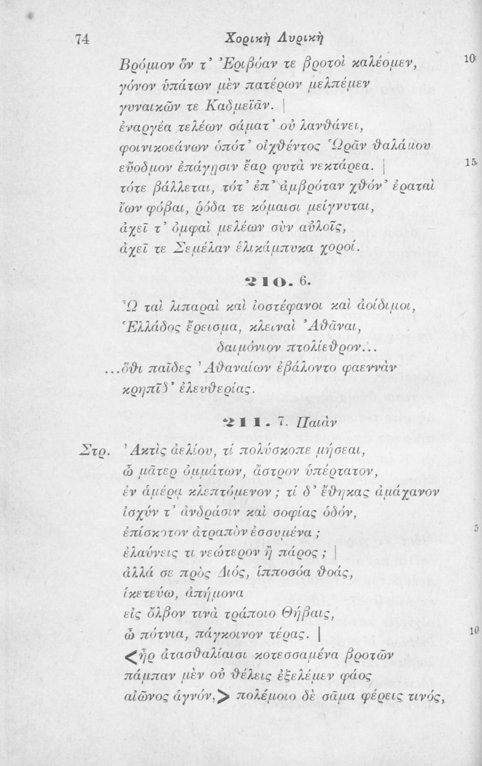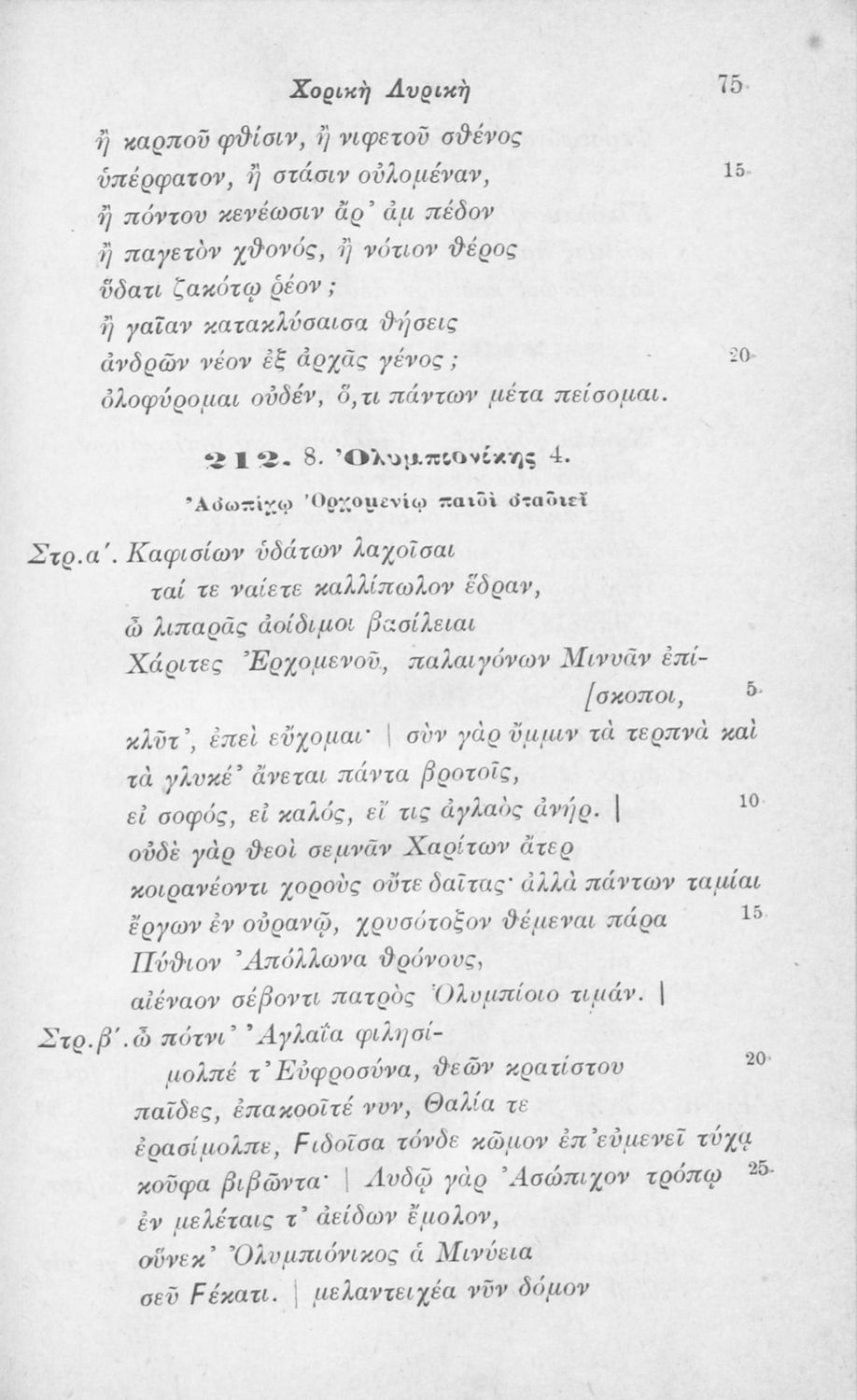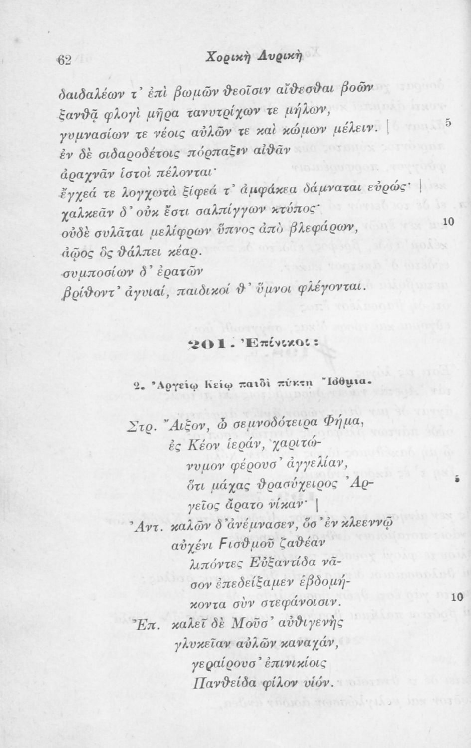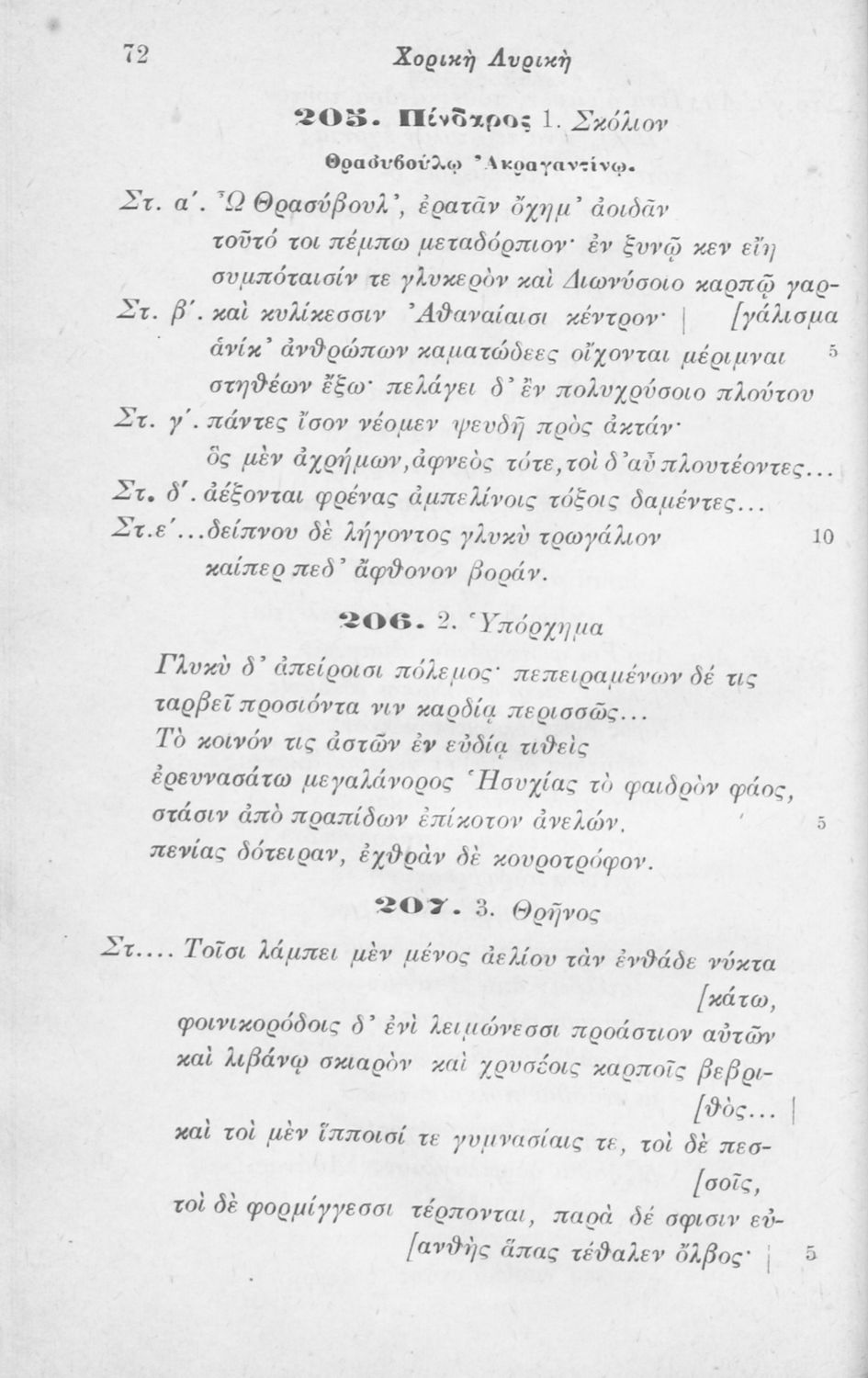 Μαθητικό βοήθημα Αρχαίων Ελληνικών Γ΄ Γυμνασίου που περιλαμβάνει ποιήματα αρχαίων λυρικών, και πραγματολογικές και λεξιλογικές παρατηρήσεις. Περιέχει και παρτιτούρες με ύμνους. Ο συγγραφέας ήταν Γυμνασιάρχης στο Διδασκαλείο και στο πρότυπο Κλασσικό Γυμνάσιο της Αθήνας.