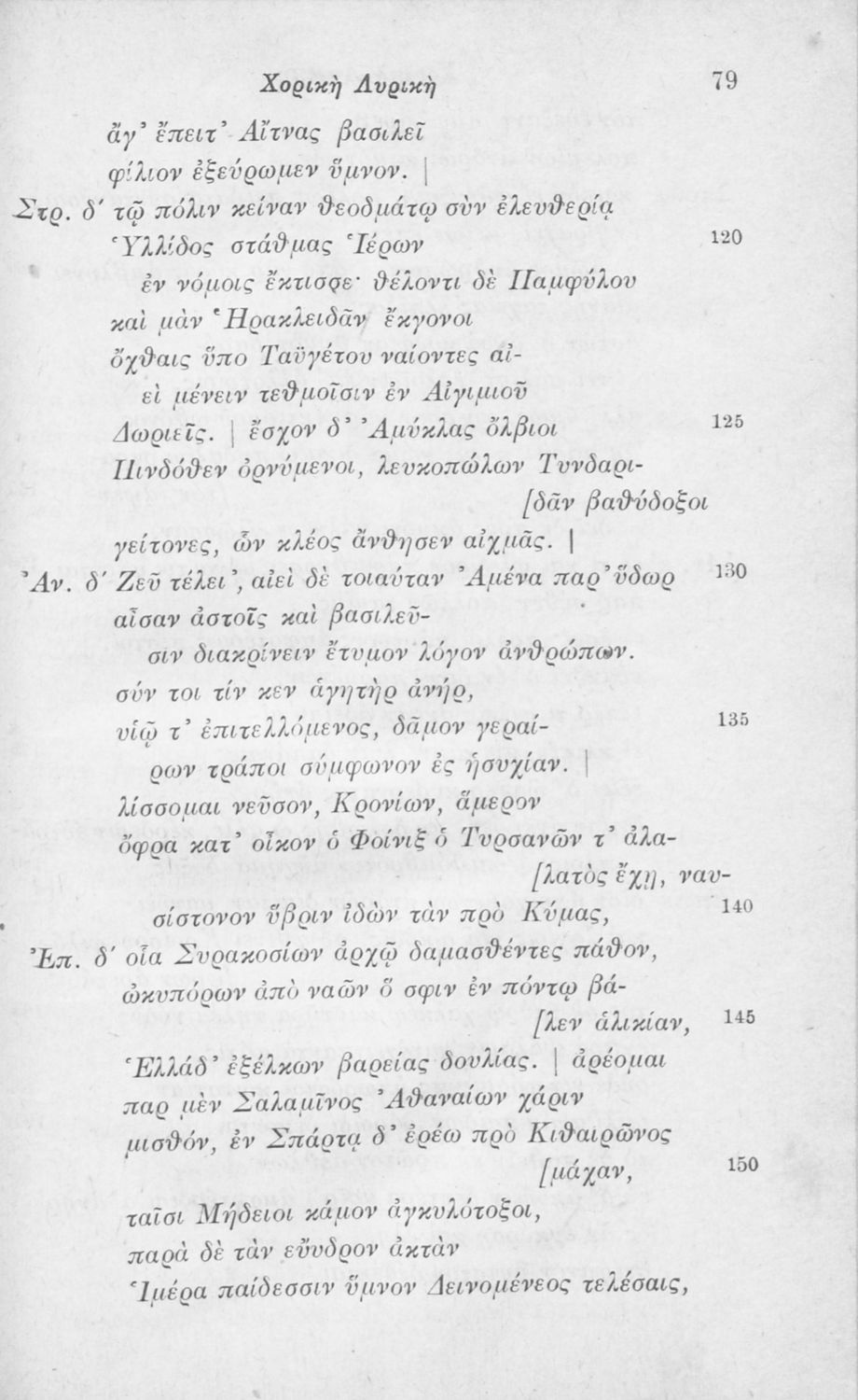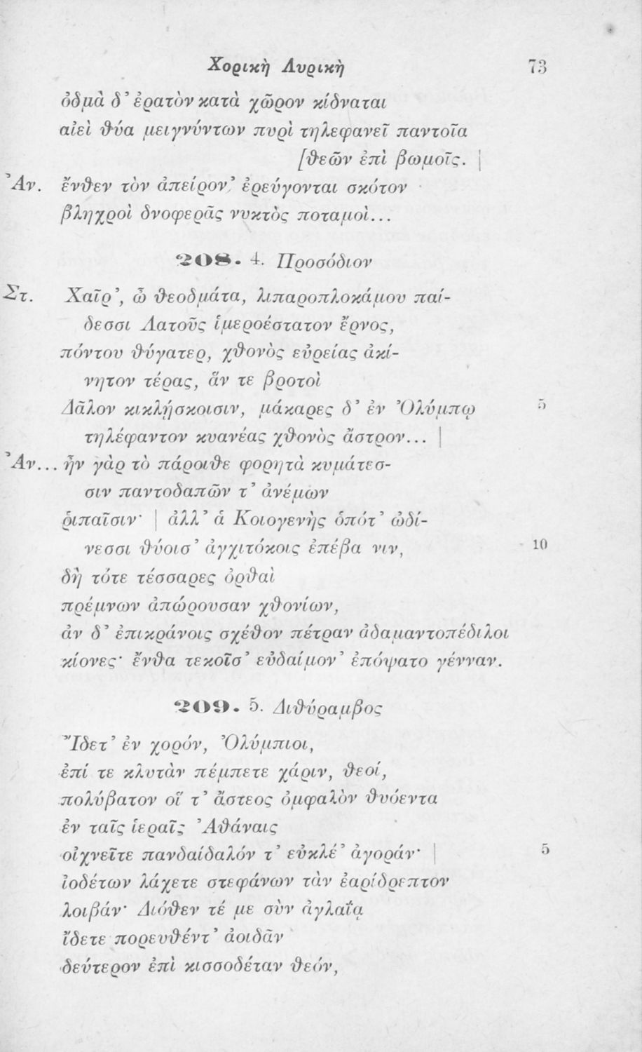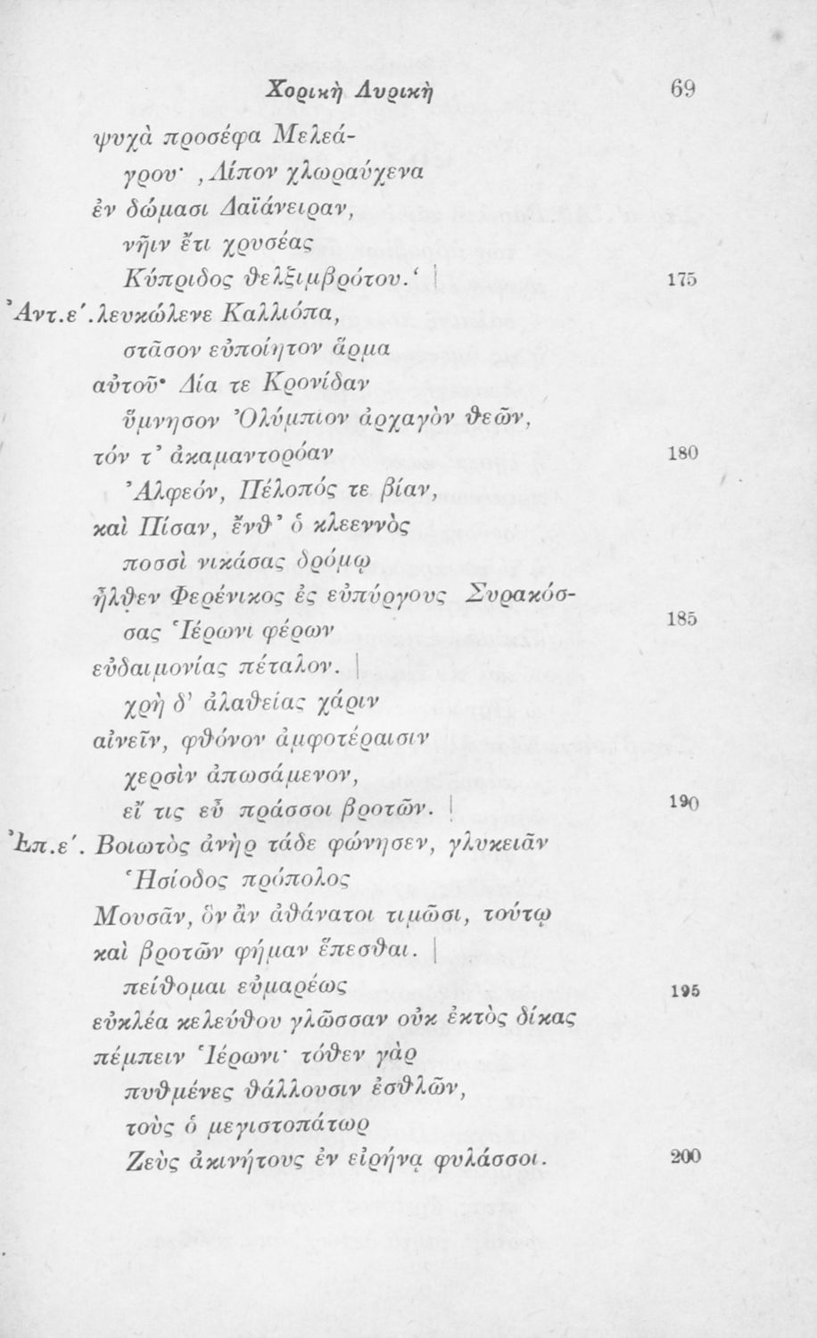 Μαθητικό βοήθημα Αρχαίων Ελληνικών Γ΄ Γυμνασίου που περιλαμβάνει ποιήματα αρχαίων λυρικών, και πραγματολογικές και λεξιλογικές παρατηρήσεις. Περιέχει και παρτιτούρες με ύμνους. Ο συγγραφέας ήταν Γυμνασιάρχης στο Διδασκαλείο και στο πρότυπο Κλασσικό Γυμνάσιο της Αθήνας.