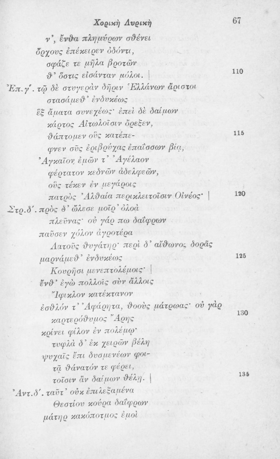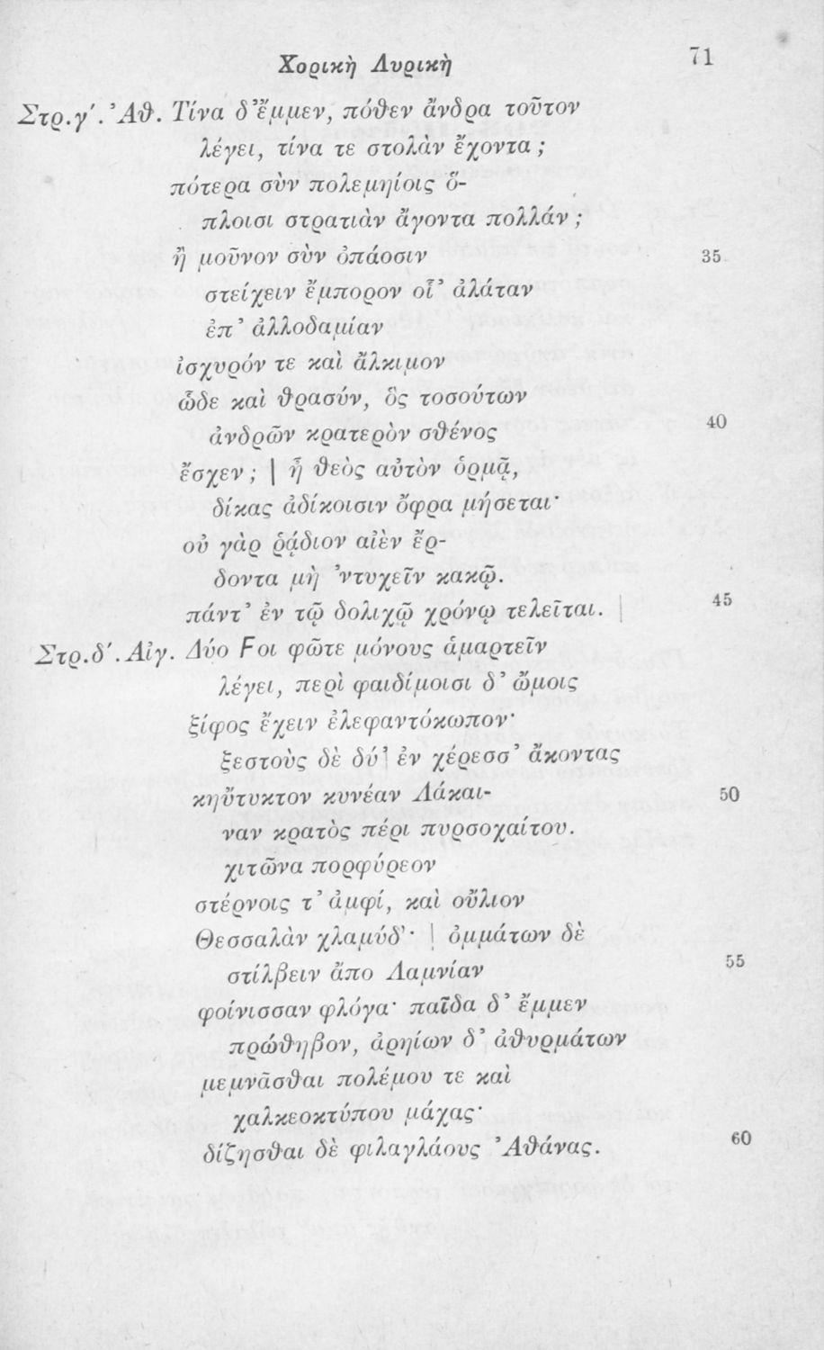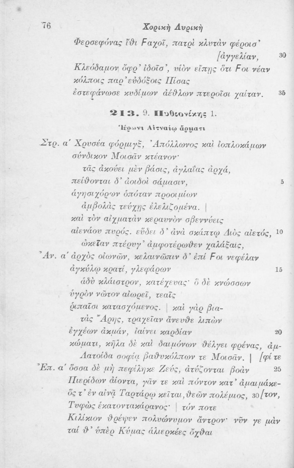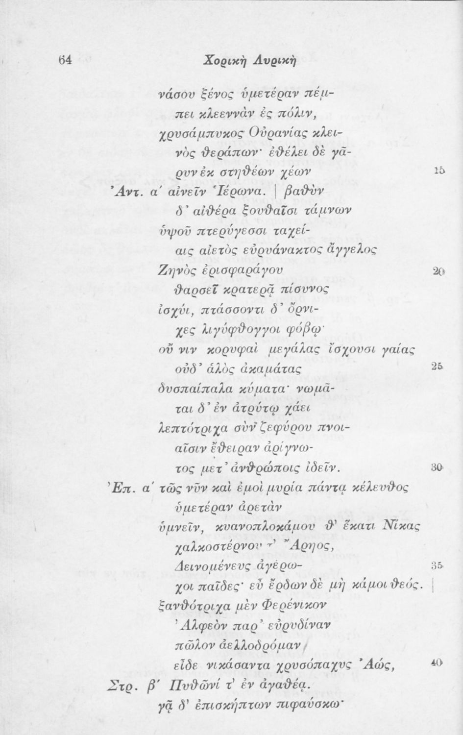 Μαθητικό βοήθημα Αρχαίων Ελληνικών Γ΄ Γυμνασίου που περιλαμβάνει ποιήματα αρχαίων λυρικών, και πραγματολογικές και λεξιλογικές παρατηρήσεις. Περιέχει και παρτιτούρες με ύμνους. Ο συγγραφέας ήταν Γυμνασιάρχης στο Διδασκαλείο και στο πρότυπο Κλασσικό Γυμνάσιο της Αθήνας.