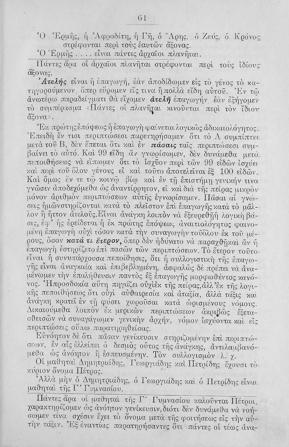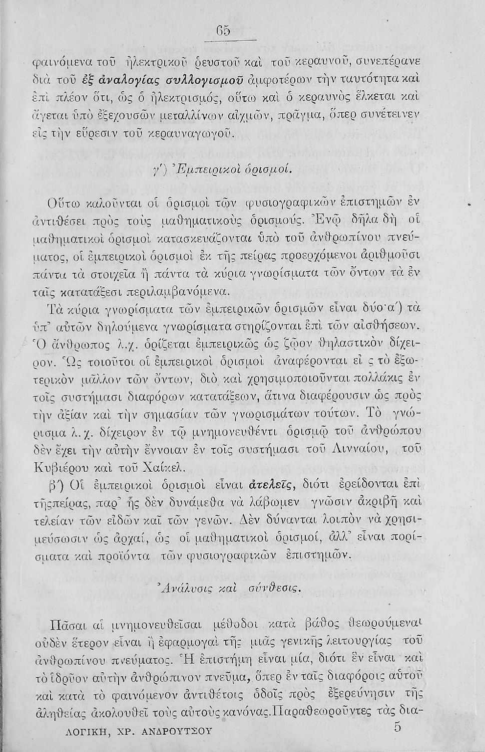 Σχολικό εγχειρίδιο Λογικής Γυμνασίου που είναι χωρισμένο σε στοιχειολογία και μεθοδολογία. Ο συγγραφέας ήταν Δρ Φιλοσοφίας και καθηγητής στη Ριζάρειο Σχολή και το Αρσάκειο Παρθεναγωγείο.