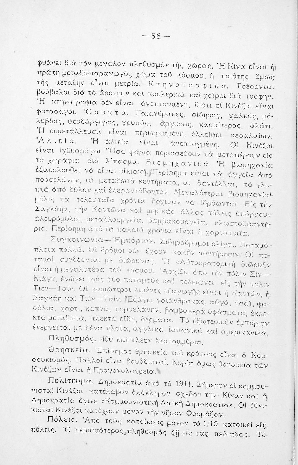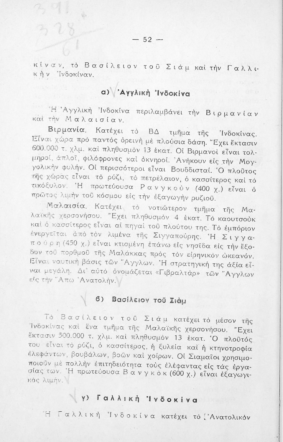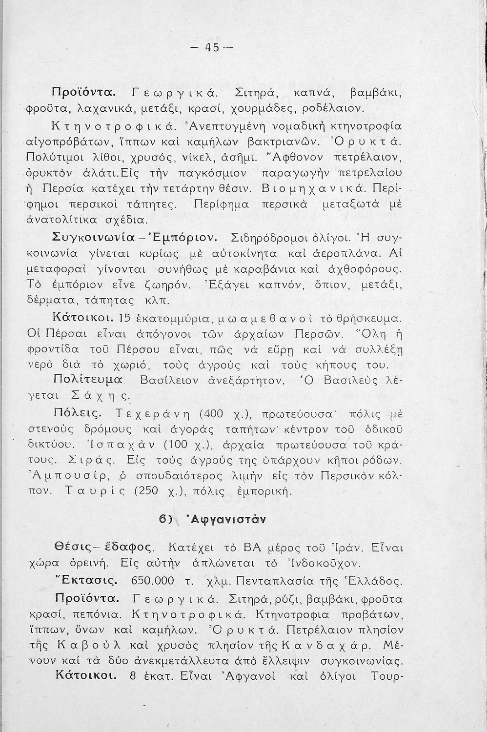 Πρόκειται για σχολικό εγχειρίδιο το οποίο προοριζόταν για τη διδασκαλία του μαθήματος της Γεωγραφίας στην Ε΄ και ΣΤ΄ Δημοτικού. Φέρει λίγες προσωπικές σημειώσεις του μαθητή και το εξώφυλλο παρουσιάζεται αρκετά