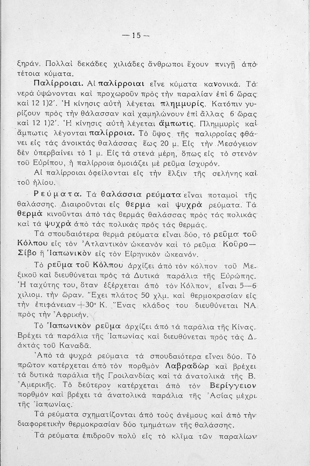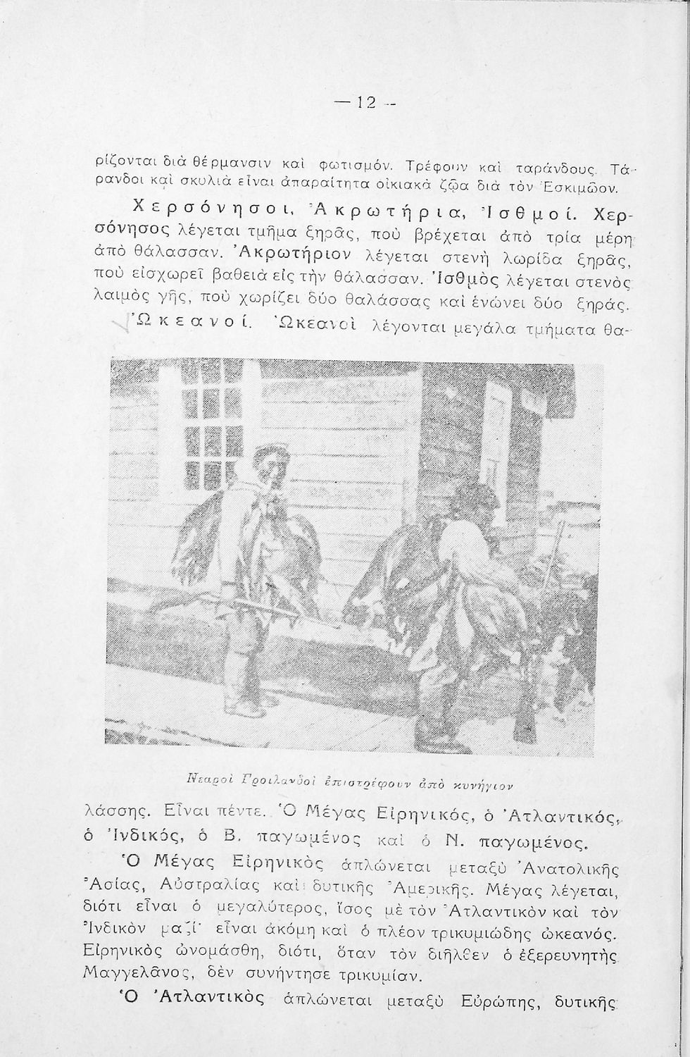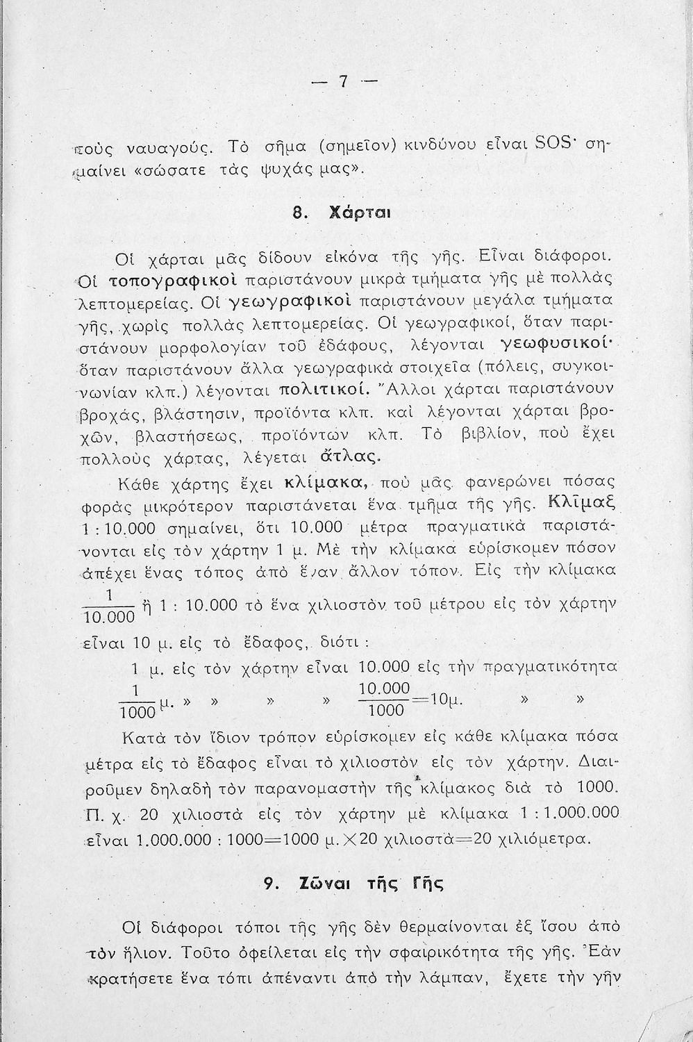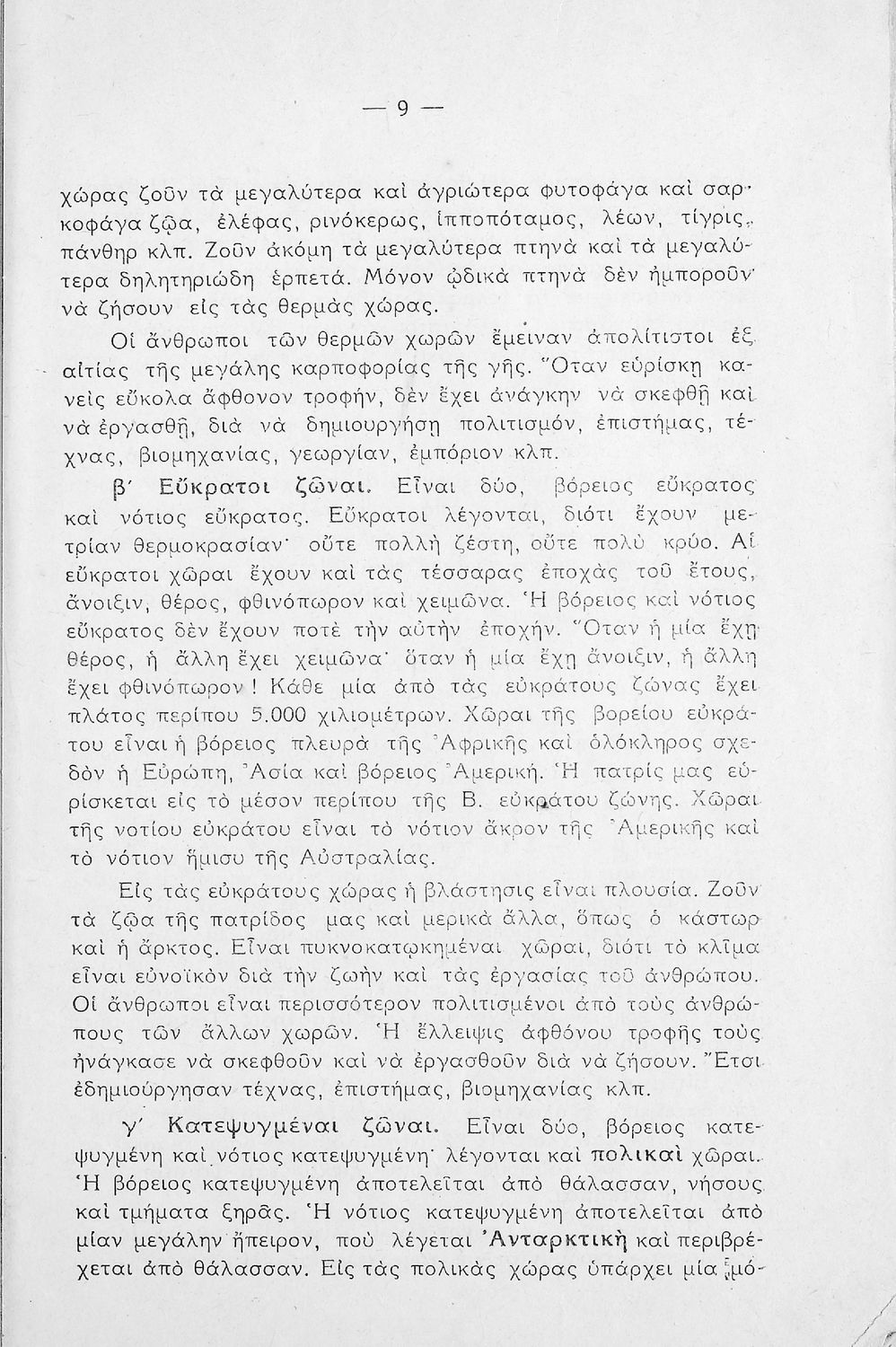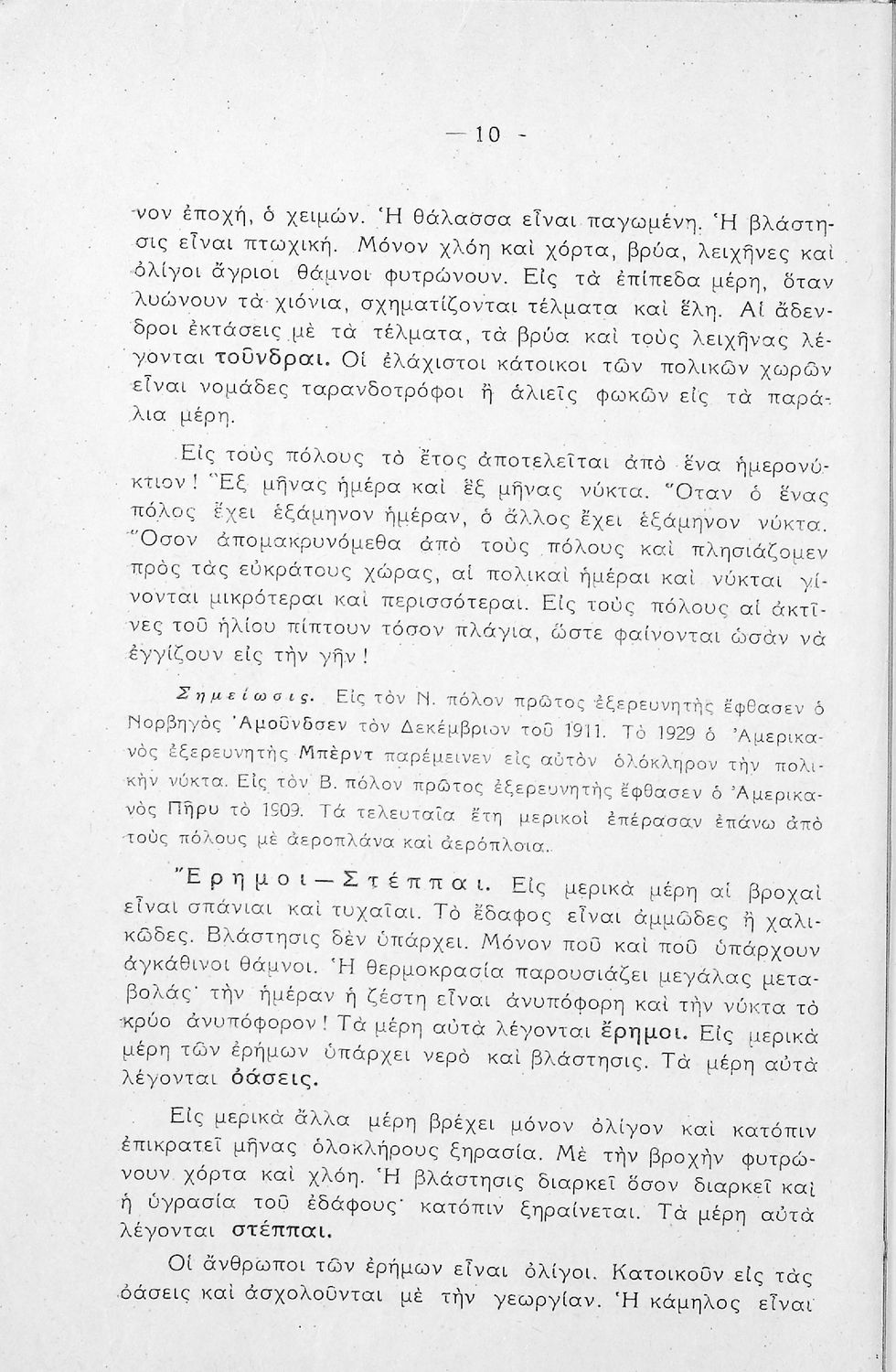 Πρόκειται για σχολικό εγχειρίδιο το οποίο μέσα από πλούσια εικονογράφηση προοριζόταν για τη διδασκαλία του μαθήματος της Γεωγραφίας στην Ε΄ και ΣΤ΄ Δημοτικού. Φέρει την υπογραφή του συγγραφέα και τη σφραγίδα ...