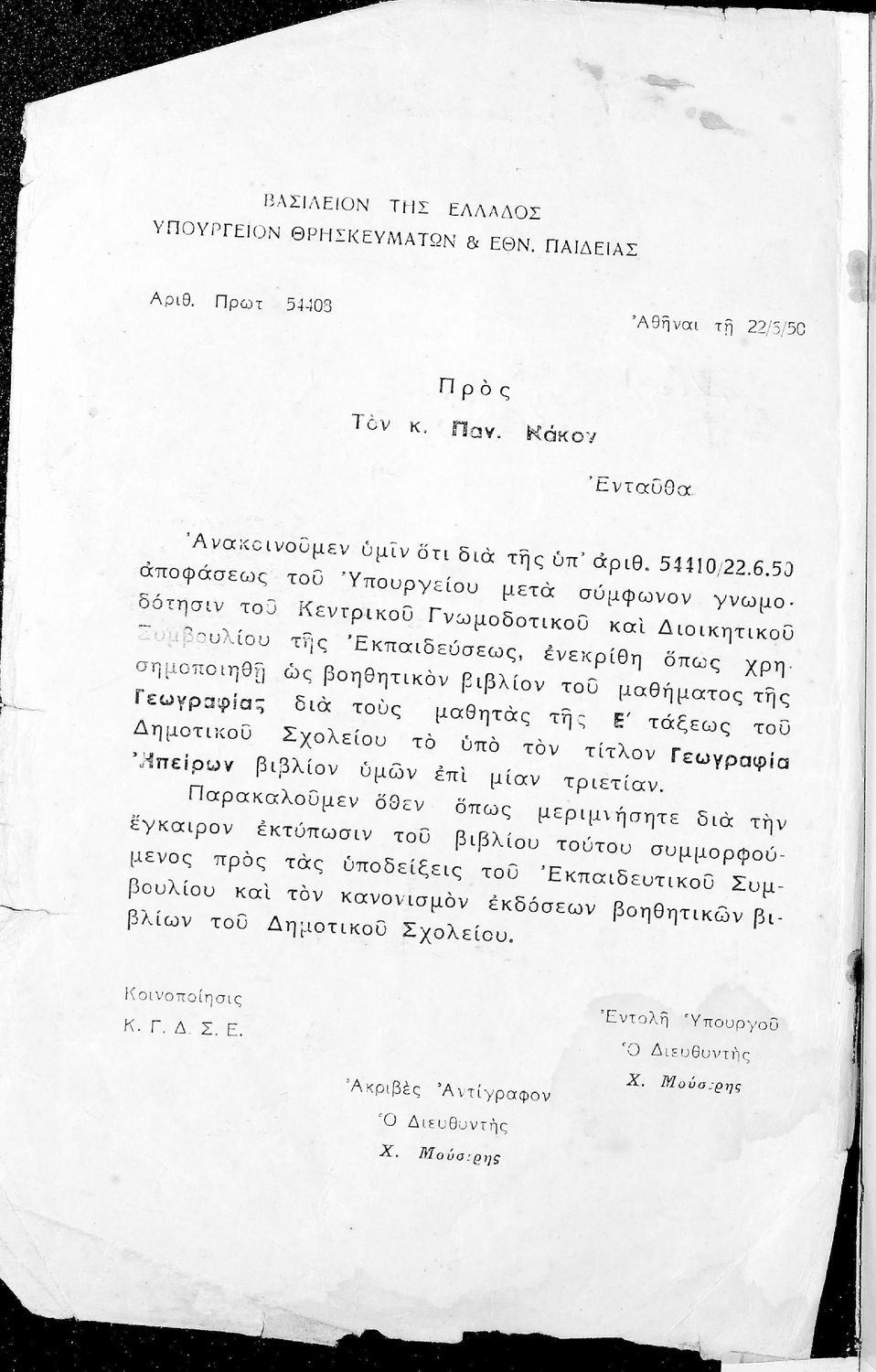 Υπουργική απόφαση / Σύμβαση: 54410/22-6-1950