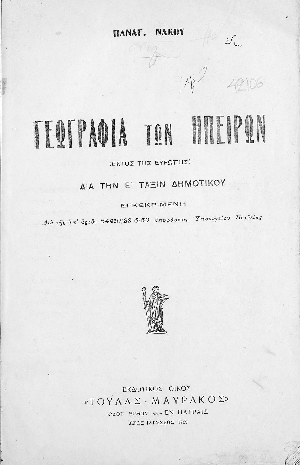 Τίτλος: Γεωγραφία των Ηπείρων (εκτός της Ευρώπης) δια την Ε΄ τάξιν Δημοτικού
