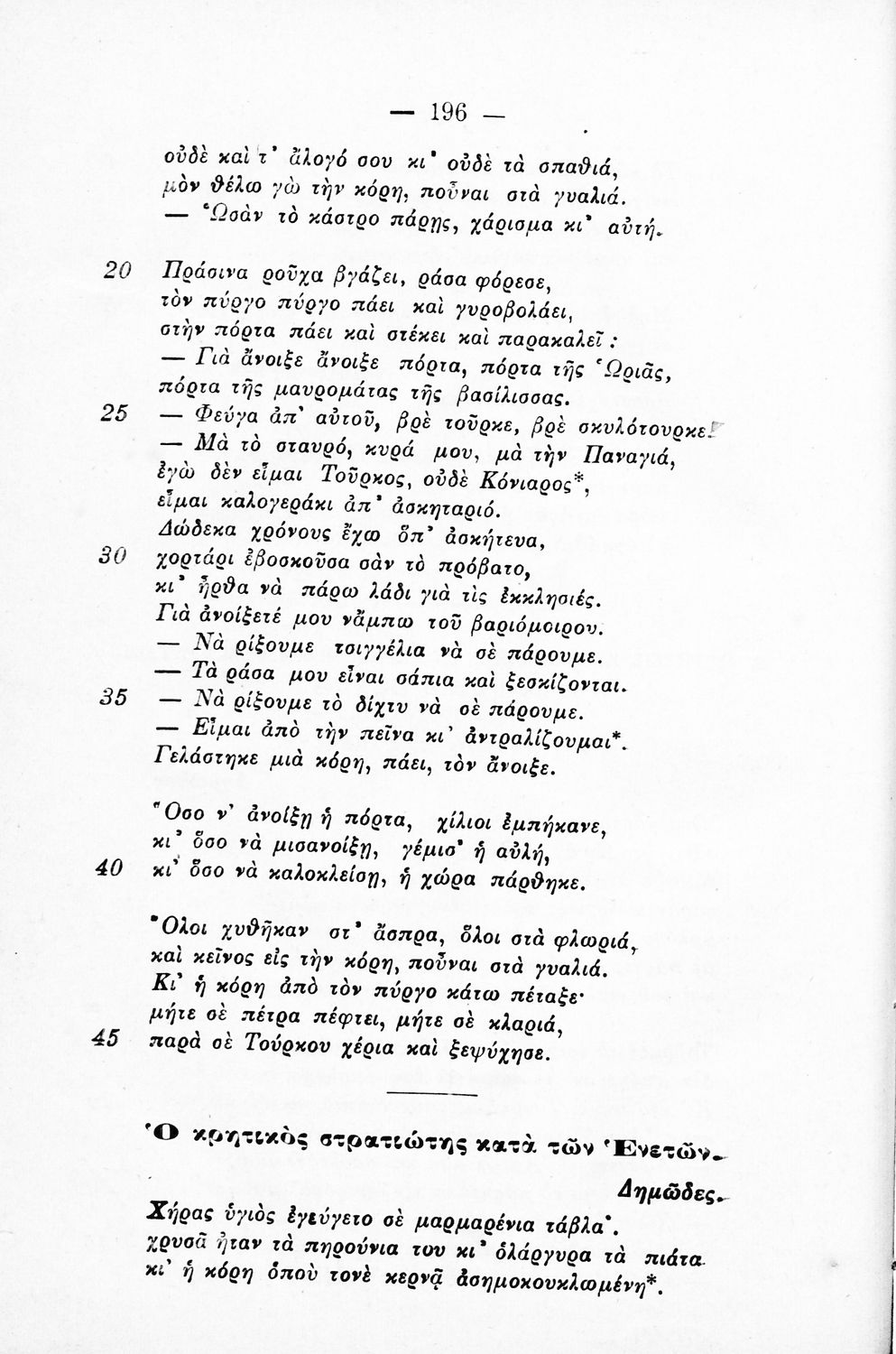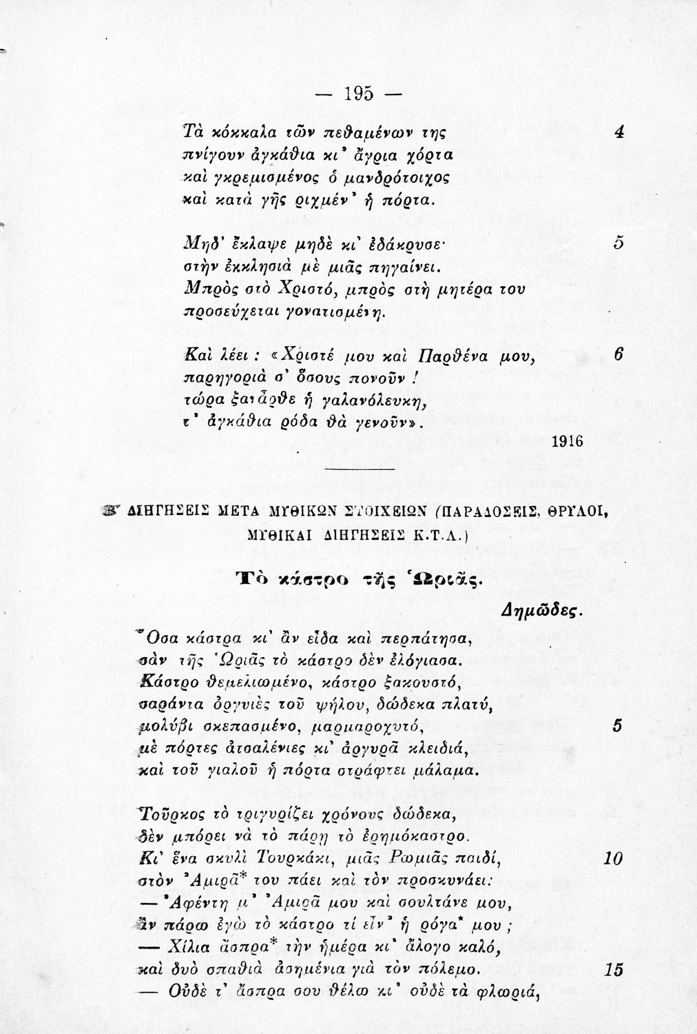 Σχολικό εγχειρίδιο για την Β΄ Γυμνασίου και την Γ΄ Αστικού Θηλέων για το μάθημα των Νέων Ελληνικών. Το εγχειρίδιο αποτελείται από κείμενα πεζού λόγου, επικολυρικά ποιήματα, ωδές, ηθογραφικά διηγήματα, ρητορικά