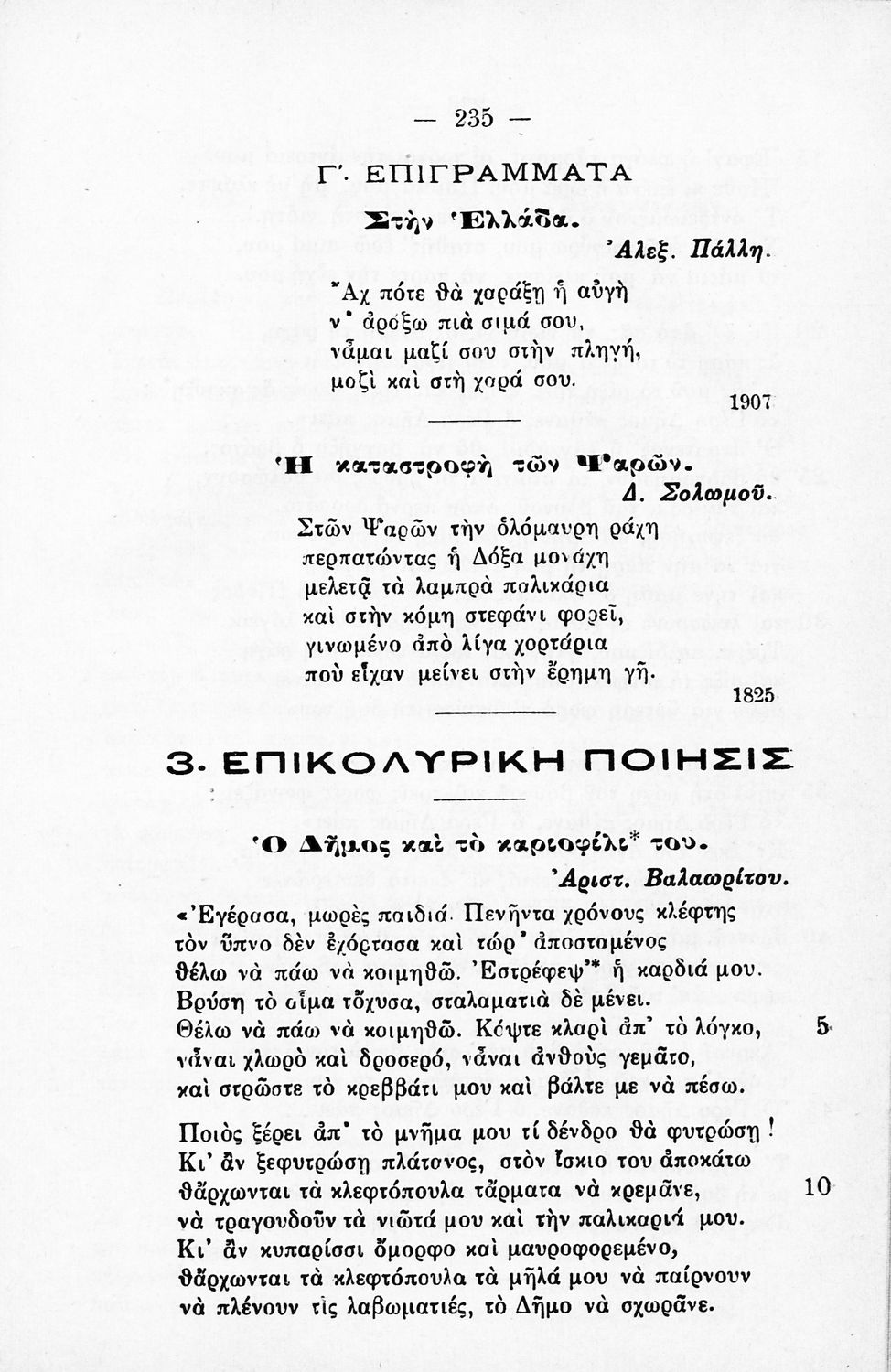 Σχετιζόμενοι όροι:  Λάμπρος, Σολωμός, Κάλβος, Κοραής, Παλαμάς