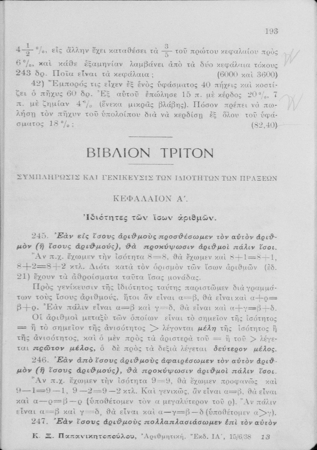 Αριθμητική προς χρήσιν των μαθητών και μαθητριών των Γυμνασίων Α΄, Β΄, Γ΄ τάξεως, των Ημιγυμνασίων και των Ανωτέρων Παρθεναγωγείων