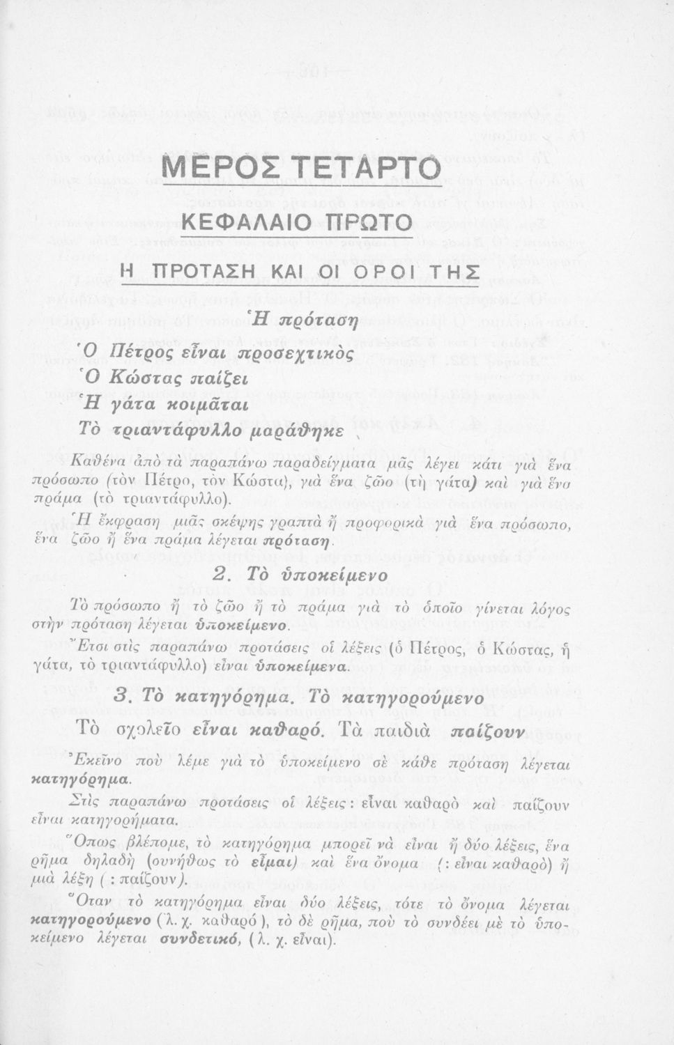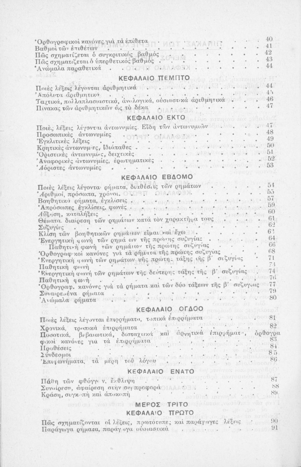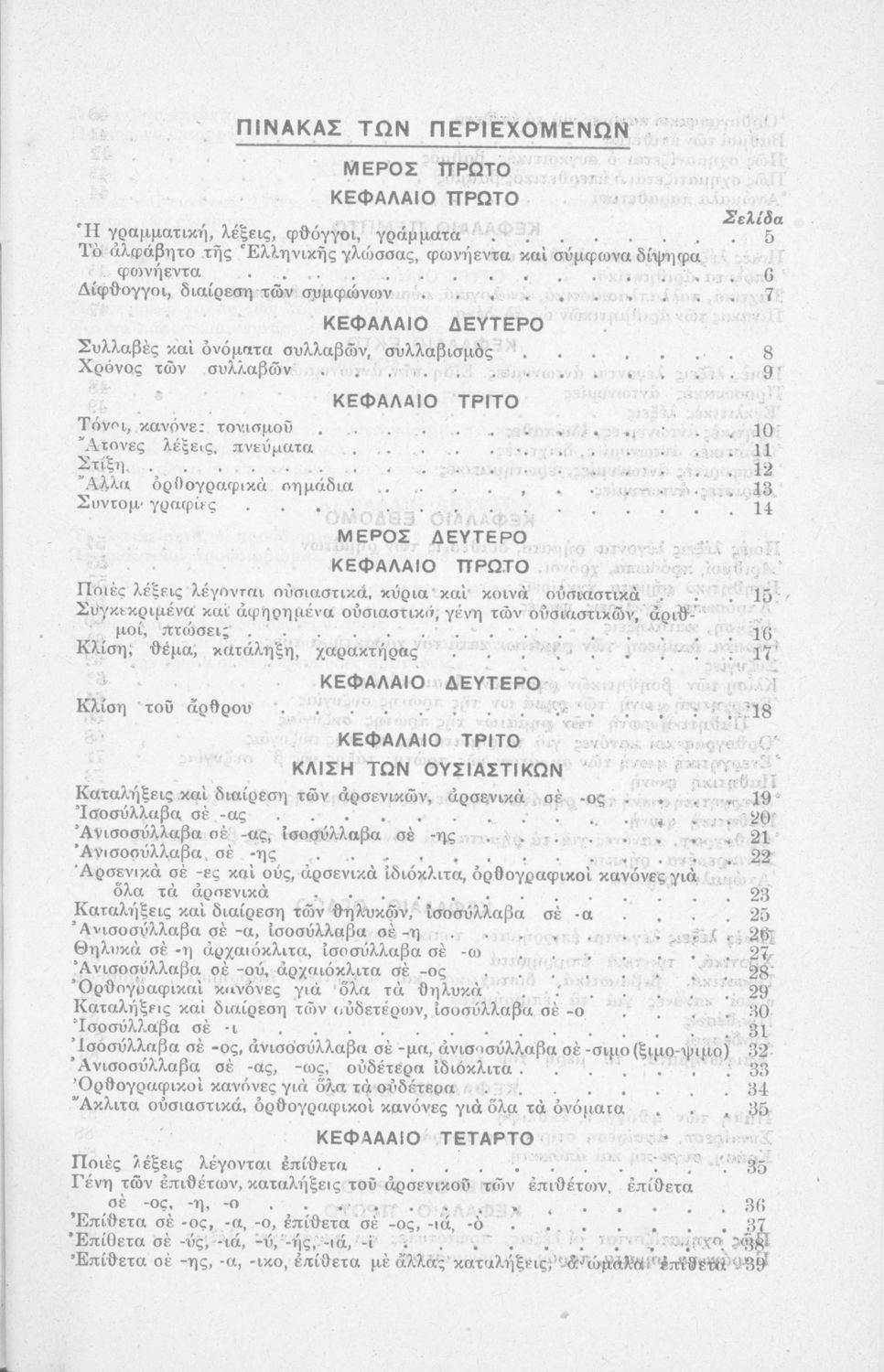 Μαθητικό βοήθημα Γραμματικής για τους μαθητές της Ε΄ και ΣΤ΄ τάξης του Δημοτικού. Περιέχει τη διδασκαλία της γραμματικής της καθαρεύουσας.